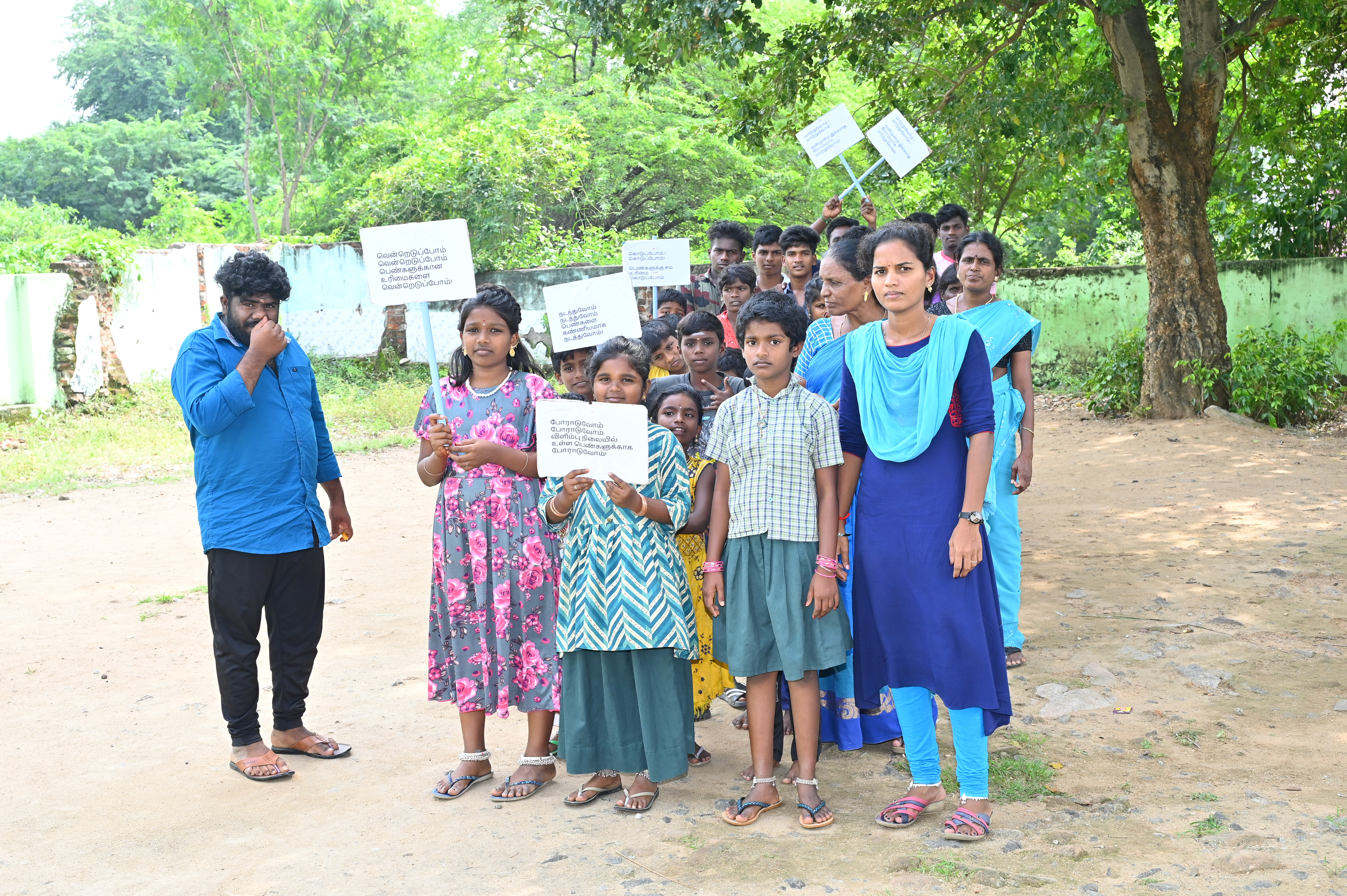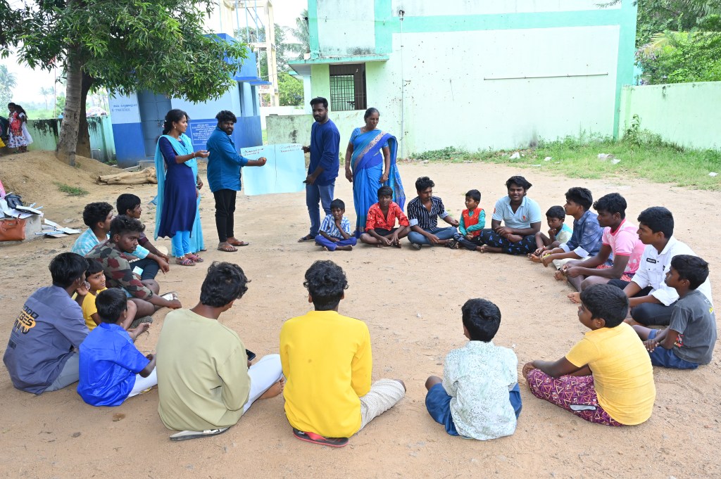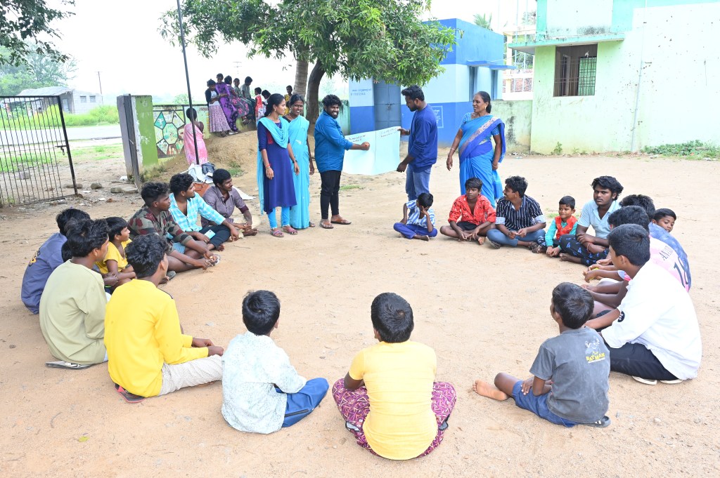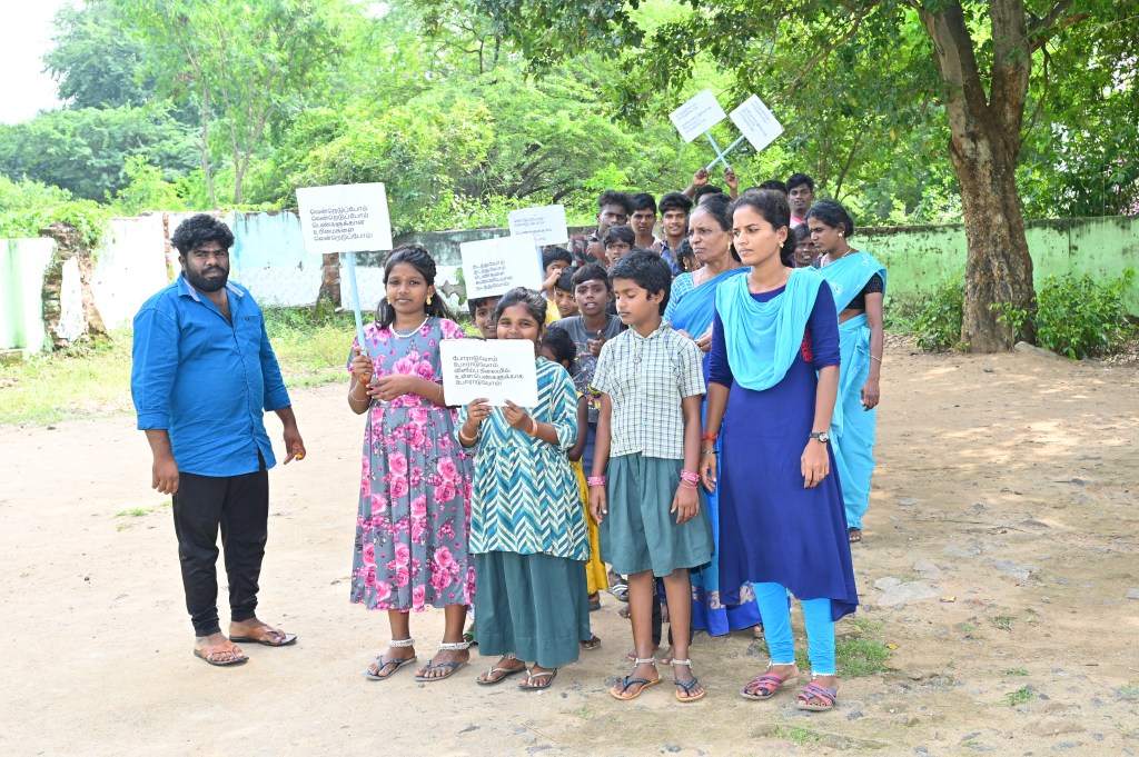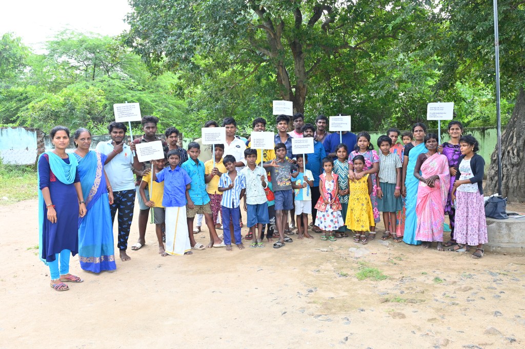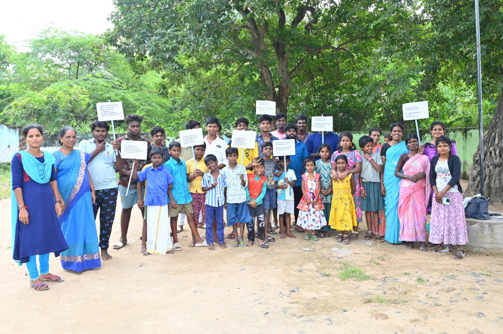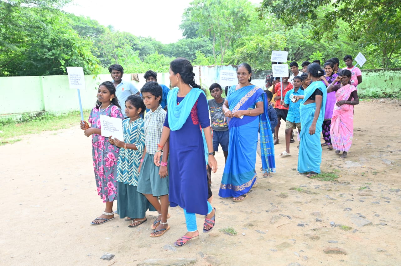 On 13.11.2023, Our fellow organized masculinity campaign by men & boys in Thenpallipatu. In the campaign 41 persons were participated. In the campaign, the participants created awareness by way of flag card and they made rally. After the rally in the village, the Persons shared how the masculinity training changed them. They said, that during the mensuration period of family members they supported, they used to do the help in the house hold work, use to wash the clothes, they allow them wear dress as per their wishes. And also the parents of men & boys, shared they is lot of changes in the sons. like washing clothes, supporting them during they were ill and helping the household works.