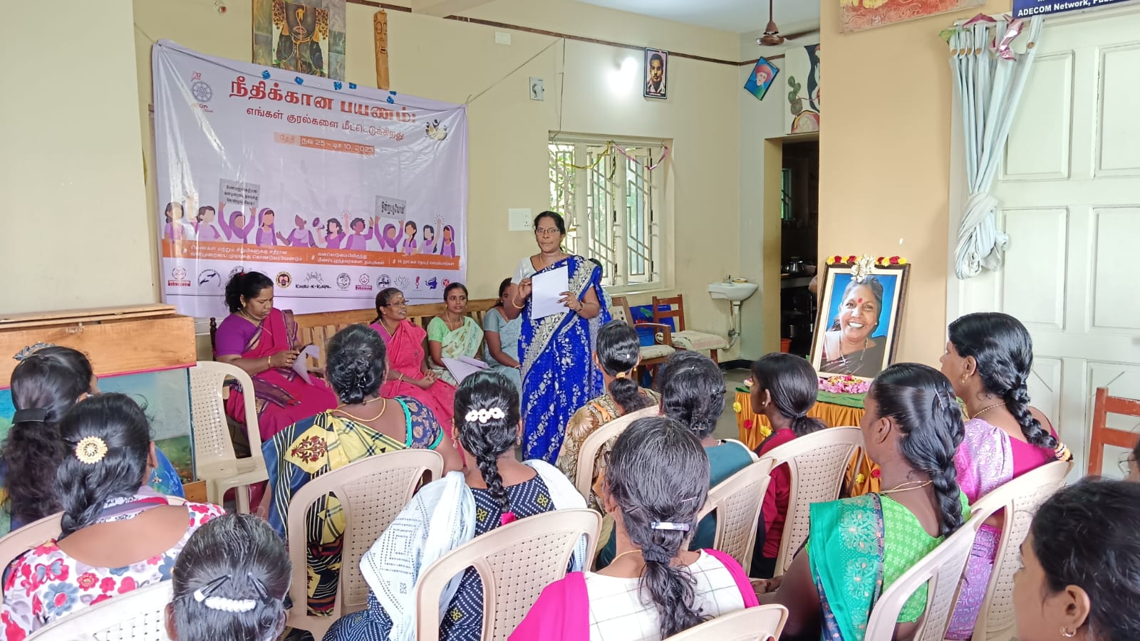 புதுச்சேரி ,25.11.2023 அதேகொம் பின்னகம் , மைத்திரி தேசிய பெண்கள் கூட்டமைப்பு மற்றும் பெண் ஒளி கூடம் ஒருங்கிணைக்கும் பாலின அடிப்படையிலான வன்முறைக்கு எதிரான16 நாட்கள் தொடர் பிரச்சாரம் முதல் நாள் நிகழ்ச்சியின் துவக்கமாக திருமதி லலிதாம்பாள் நிர்வாக அறங்காவலர் அவர்களுக்கு மௌன அஞ்சலி செலுத்தப்பட்டது. திருமிகு சாந்தி, குடும்ப நல ஆலோசகர் அதேகொம் பின்னகம் அவர்கள் வரவேற்புரை வழங்கினார் அதைத் தொடர்ந்து திருமிகு காயத்ரி ஸ்ரீகாந்த் ,இரவி நிறுவன இயக்குனர் துவக்க உரையாற்றினார். நகைச்சுவை கலந்த விளையாட்டுடன் துவங்கினார். பெண்ணின் சுதந்திரம் மற்றும் பெண்ணுரிமை பற்றி கூறினார்.பெண்ணின் கர்ப்பப்பை பற்றி விளக்கினார் .அதனைத் தொடர்ந்து திருமிகு அத்தாட்சியா மேரி வழக்கறிஞர் ,அவர்கள் குடும்ப வன்முறை சட்டம் 2005 பற்றி விளக்கினார். திருமதி காமாட்சி FCC குடும்ப நல ஆலோசகர் அவர்கள், ஆலோசனை என்றால் என்ன யாருக்கெல்லாம் ஆலோசனை வழங்கலாம் பெண்களுக்கு எப்படி ஆலோசனை வழங்குவது என்பது பற்றி விரிவாக விளக்கினார். திருமிகு ரோஸ்லின் ஷீலா, சமூகப் பணியாளர் மகளிர் மற்றும் குழந்தைகள் மேம்பாட்டு துறை அவர்கள் நாம் ஏன் இந்த நிகழ்வை கொண்டாடுகிறோம் எதற்காக கொண்டாடுகிறோம் என்பது பற்றி விரிவாக கூறினார் குடும்ப வன்முறை என்றால் என்ன அது துவங்கிய வருடம் மற்றும் குடும்ப வன்முறை வகைகள் ஆன உடல் ரீதியான வன்முறை மனரீதியான வன்முறை பாலியல் துன்புறுத்தல் தனிமைப்படுத்துதல் அச்சுறுத்தல்கள் பொருளாதார வன்முறை மேலும் குடும்ப வன்முறை எப்படி நிகழ்கிறது? அது தொடர்பான அரசாங்க உதவிகள் அரசாங்கத் திட்டங்கள் பற்றி விளக்கினார். மேலும் பெண்களுக்கான இலவச தொலைபேசி சேவை எண் 181 பற்றியும் விளக்கி கூறினார். அடுத்ததாக திருமிகுதெரேசா ,சகோதரி இல்லம் ஆலோசகர் அவர்கள் பேசுகையில் குடும்ப வன்முறை தொடர்பான எடுத்துக்காட்டுகள் மற்றும் அது சம்பந்தமான வழக்குகள் பற்றி விளக்கினார். ஒரு சிறிய ஆக்டிவிட்டி மூலம் பங்கேற்பாடுகளை உற்சாகப்படுத்தினார். அதனைத் தொடர்ந்து குடும்ப வன்முறை தொடர்பான அரசாங்கத் திட்டங்களை எப்படி செயல்படுத்துவது அதனை தெரிந்து கொள்வது பற்றியும் விரிவாக விளக்கினார். நிகழ்ச்சியின் நிறைவாக திருமிகு மோனிகா அவர்கள் நன்றியுரை வழங்கினார்