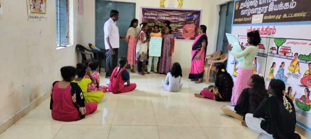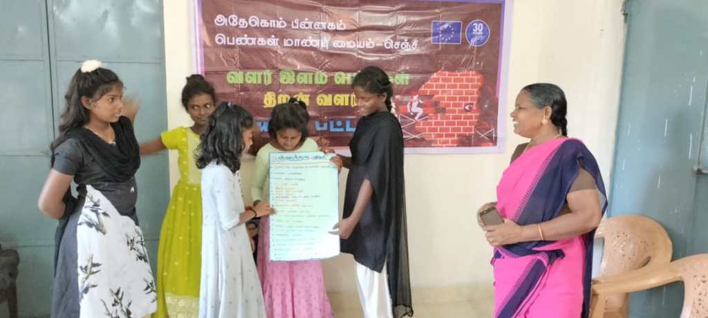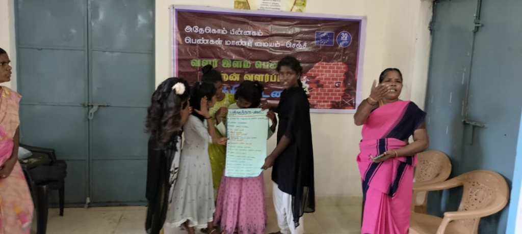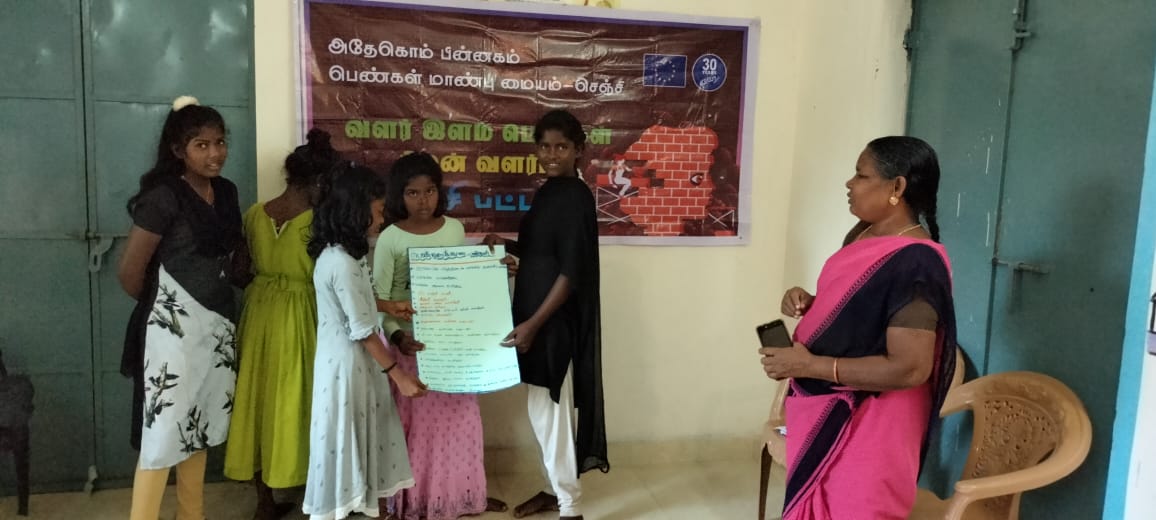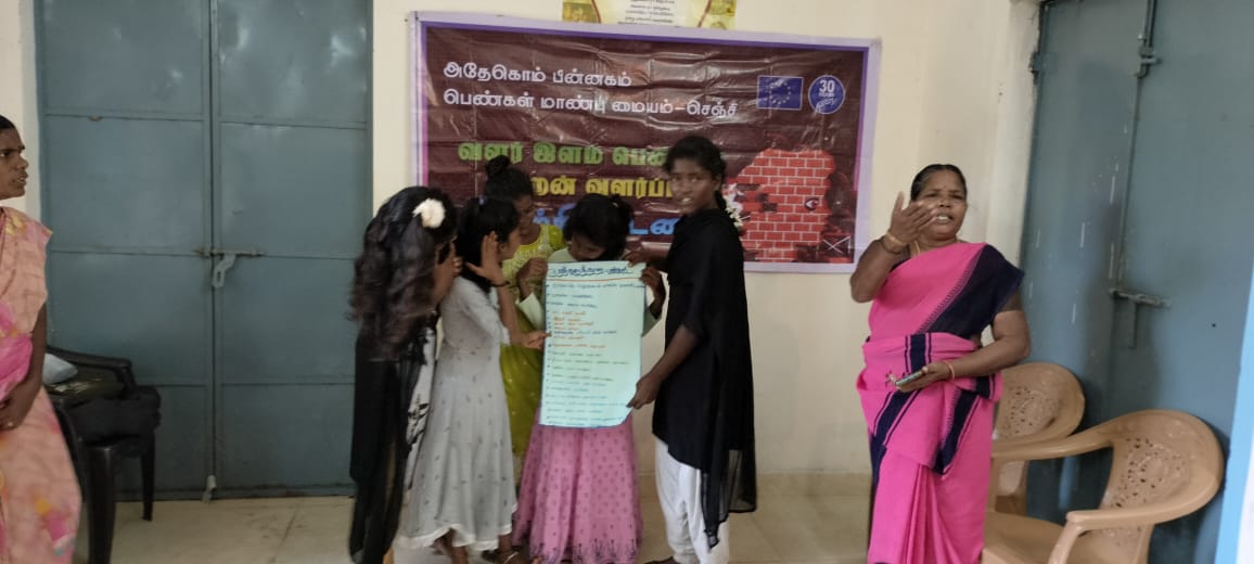மேலும் குடும்பத்திலும் சமூகத்திலும் பெண்கள் மற்றும் ஆண்களுக்கான பொறுப்புகளும் கடமைகளும் குறித்து குழுக்களாக பிரித்து தங்களுடைய கருத்துக்களை தங்களுடைய கருத்துக்களை chart மூலம் எழுதி ஒவ்வொரு குழுக்களாக விளக்கம் கொடுத்தனர். அதைத்தொடர்ந்து மாணவர்களும் தங்களுடைய கருத்துக்களை பரிமாறிக் கொண்டனர்.