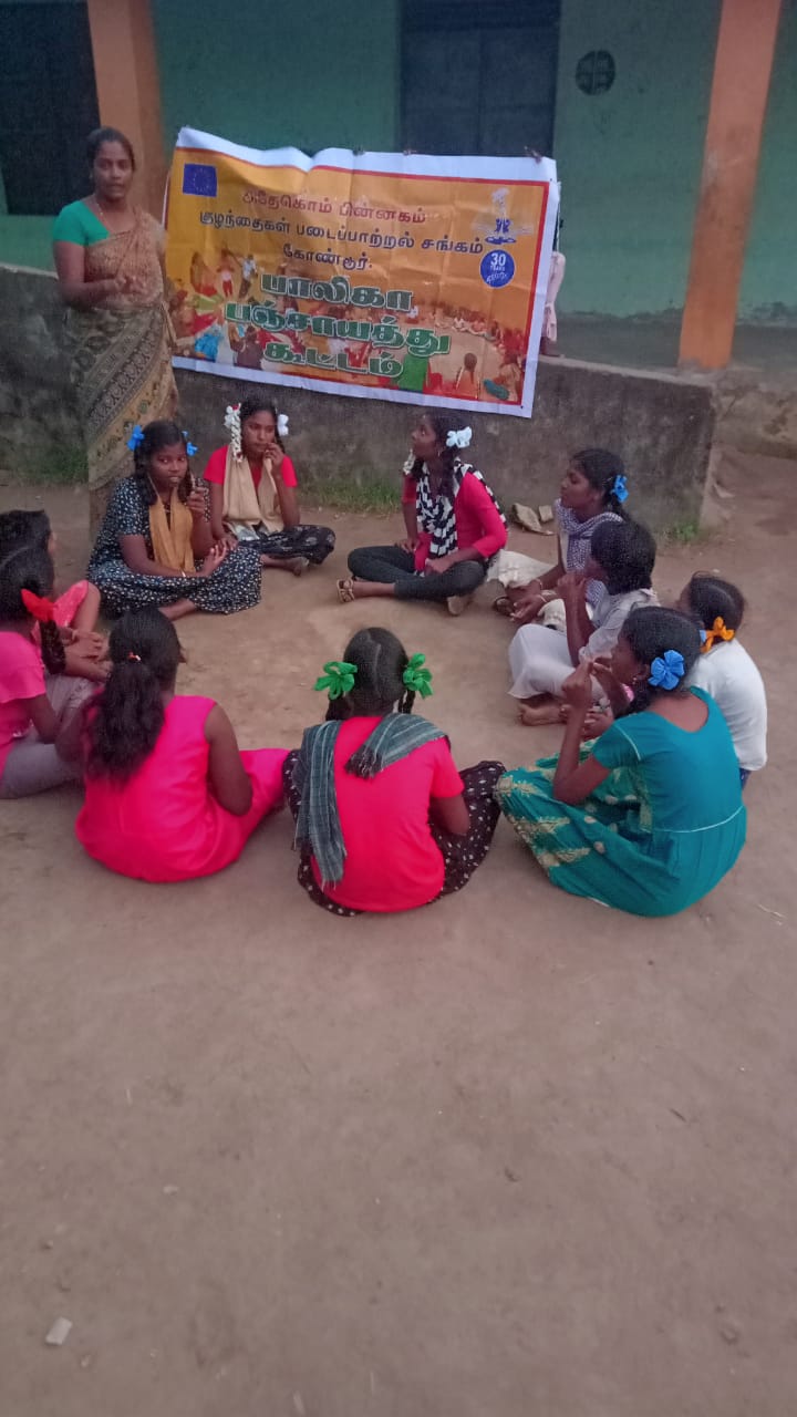 அதற்கு மாணவிகள் தெரியவில்லை என்றார்கள். வருகின்ற ஜனவரி 26 ஆம் தேதி அன்று அவர்கள் ஊரில் கிராம சபா கூட்டம் நடைபெற உள்ளது அதில் தங்கள் மனு கொடுத்து தங்களுடைய தேவைகளை பூர்த்தி செய்து கொள்ள வேண்டும் என்று கூறினார்கள். பின்பு எப்படி மனு எழுதுவது என்று ஒருங்கிணைப்பாளர்கள் கற்று கொடுத்தனர்.