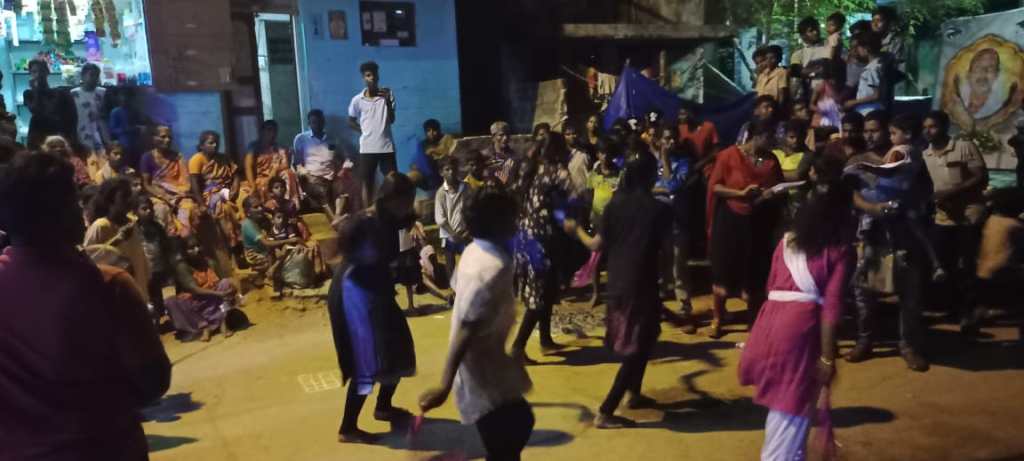 பறை நிகழ்ச்சி நடத்தப்பட்டது அதில் அனைத்து மக்களும் மகிழ்ச்சியுடன் கண்டு கழித்தனர்.பின்னர் பாலின சமத்துவத்தை பற்றி ராஜேஷ் பள்ளி ஆசிரியர் அவர்கள் பேசினார் அவர் பேசுகையில் ஆண் குழந்தையும் பெண் குழந்தையும் சமம் பெண் ஆண் குழந்தைகளை வளர்ப்பது போல் பெண் குழந்தைகளையும் வளர்க்க வேண்டும் என்பதை பற்றியும் புரிதலை ஏற்படுத்தினார் மற்றும் ஆண் குழந்தைகளுக்கு கொடுக்கும் உரிமைகள் போல் எடுத்துக்காட்டாக உணவு, உடை, தைரியம், தனியாக வெளியில் செல்வது ,கல்வி ,போன்ற அனைத்து உரிமைகளும் பெண் குழந்தைகளுக்கும் கொடுக்க வேண்டும் என்பதை பற்றி கூறினார்