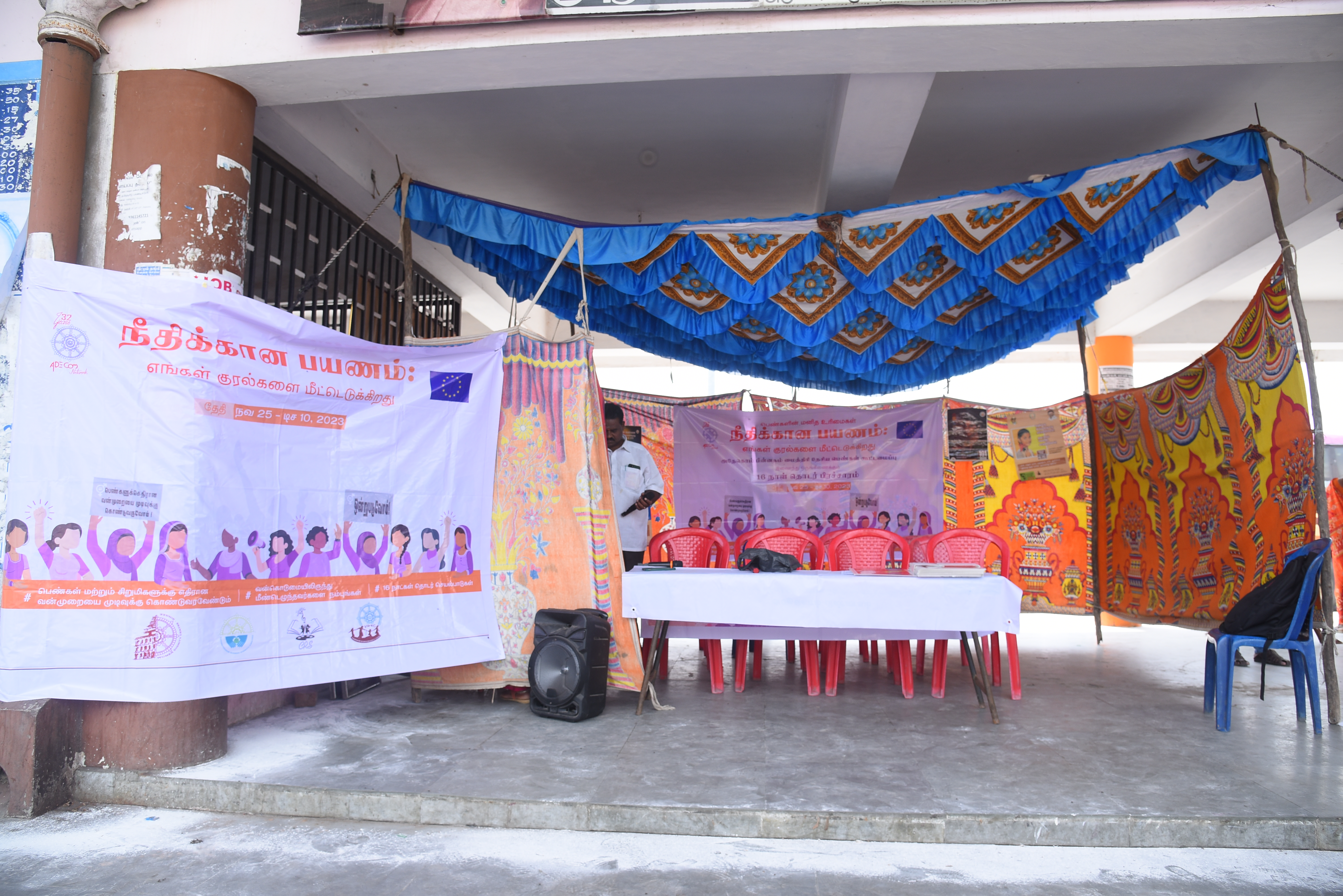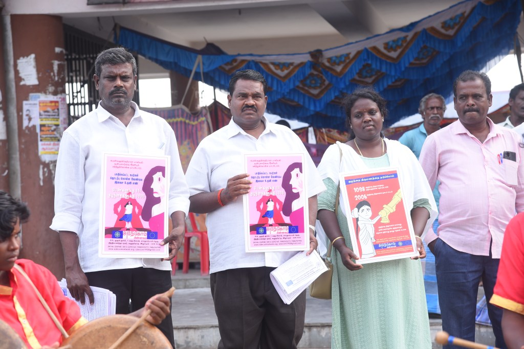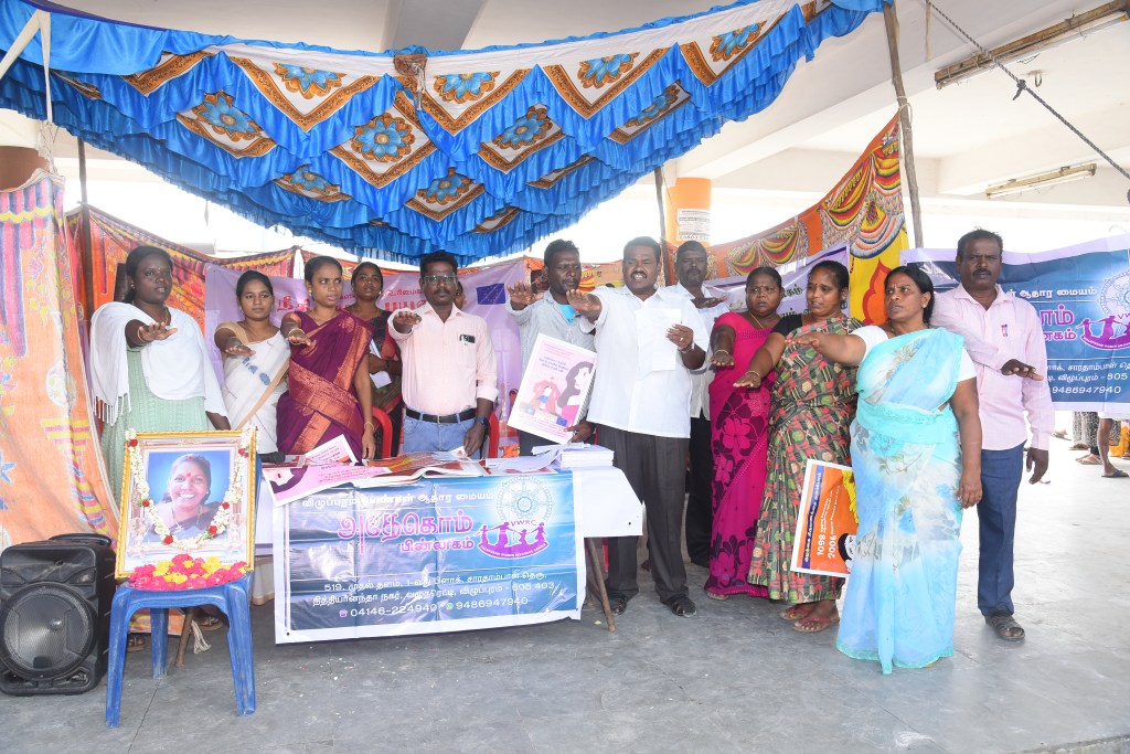 The Full day awareness program is part of a 16-day International level campaign from November 25 to December 10 on the occasion of International Human Rights Day, organized by ADECOM Network Women’s Resource Center Villupuram jointly with Department of Social Welfare and Women’s Rights at New Bus Station, in Villupuram District .