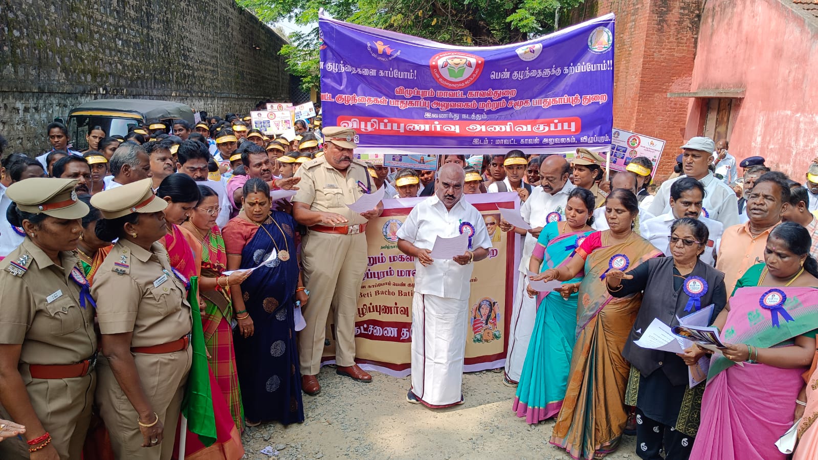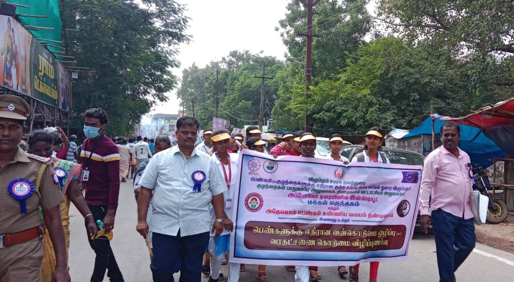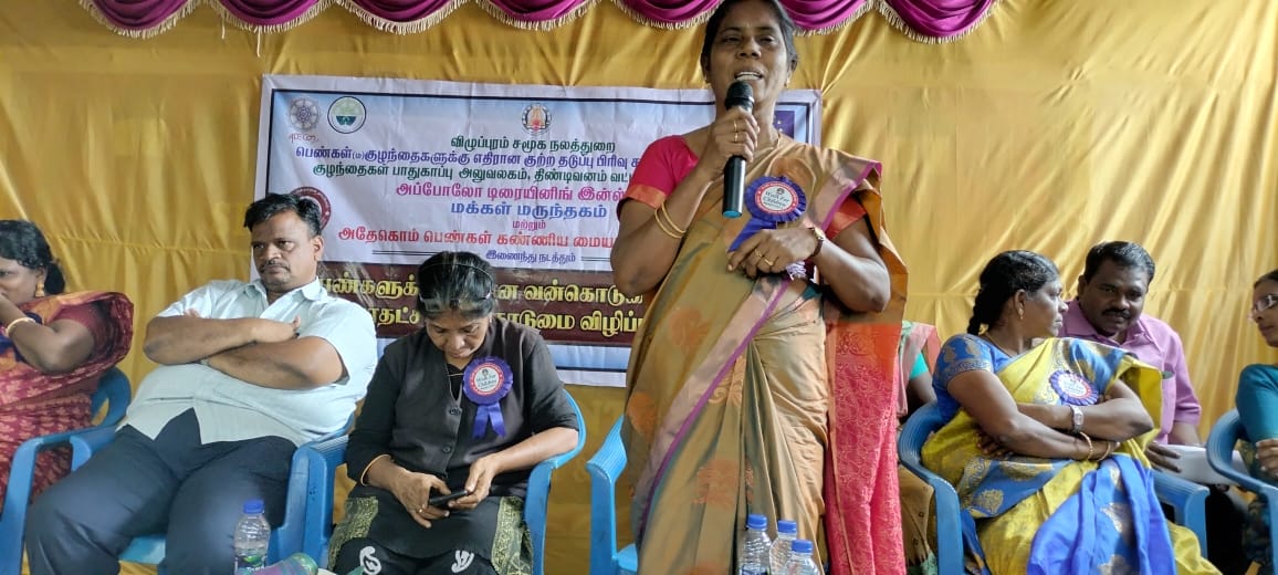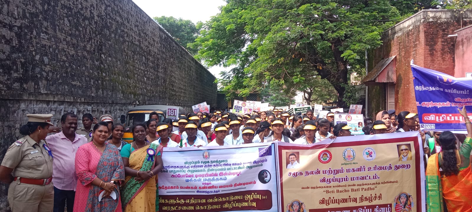 இன்று 14.12.2023 அதேகொம் பின்னகம் பெண்கள் கண்ணியம் மையம் திண்டிவனத்தில் சமூக நலத்துறை மற்றும் பெண்கள் , குழந்தைகள் குற்ற தடுப்பு பிரிவுடன் இணைந்து நடத்தப்பட்டது. பெண்களுக்கு எதிரான வன்கொடுமை,குடும்ப வன்முறை பற்றிய விழிப்புணர்வு மற்றும் பெண்குழந்தைகளுக்கு கற்பிப்போம்,பெண்குழந்தைகளை காப்போம் தொடர்பான பேரணி நிகழ்ச்சி ஏற்பாடு செய்யப்பட்டு. இந்த பேரணி நிகழ்ச்சி மாண்புமிகு. K.S.மஸ்தான் ,வெளிநாடு வாழ் மற்றும் சிறுபான்மை நலத்துறை அமைச்சர் அவர்களால் கொடி அசைத்து துவக்கி வைக்கப்பட்டது.இதனை தொடர்ந்து அப்பல்லோ இன்ஸ்டிடியூட் ஆப் நர்சிங் கல்லூரியில் மாணவிகளுக்கு விழிப்புணர்வு கூட்டம் நடத்தப்பட்டது. இக்கூட்டத்தில் தின்டிவனம் அதேகொம் பெண்கள் கண்ணிய ஒருங்கிணைப்பாளர் திரு.லக்ஷ்மிபதி வரவேற்புரை வழங்கினார். பெண்களுக்கான வரதட்சணை கொடுமை குறித்து சமூகநலத்துறை பாதுகாப்பு அலுவலர் திருமிகு.முத்தமிழ்ஷீலா அவர்கள் கலந்துரையாடினார், இவரைத் தொடர்ந்து வழக்கறிஞர் திருமிகு.லூசியா பெண்களுக்கான சட்டங்கள குறித்து விளக்கி கூறினார். இவரை தொடர்ந்து அதேகொம் பின்னக சட்ட ஆலோசகர் திரு.சீனுபெருமாள் அவர்கள் பெண்களுக்கான சுய சிந்தனை அதன் அவசியம் குறித்து பேசினார். ஒருங்கிணைந்த சேவை மைய அலுவலர் திருமிகு.பத்மாவதி அவர்கள் சேவை மையம் குறித்த உதவி எண்கள் குறித்து பேசினார். நிகழ்ச்சியின் சிறப்புவிருந்தினர்,மாவட்ட சமூக நல துறை அலுவலர் திருமிகு.ராஜம்மாள் சமூக நலத்துறை திட்டங்களில் மாணவிகளுக்கு முக்கிய திட்டமான புதுமை பெண் திட்டம்,பெண்களுக்கு எதிரான வரதட்சணை வன்கொடுமை மற்றும் பெண்குழந்தைகளுக்கு கற்பிப்போம்,பெண்குழந்தைகளை காப்போம்குறித்து விளக்கி கூறினார். இறுதியாக அதேகொம் பின்னகம் பெண்கள் ஆதார மைய ஒருங்கிணைப்பாளர் திருமிகு.ஆர்த்தி எப்சிபா அவர்கள் நன்றியுரை வழங்கினார். அதேகொம் பெண்கள் கண்ணிய மையம் செஞ்சி ஒருங்கிணைப்பாளர் திரு.ஜான்போஸ்கோ நிகழ்ச்சியினை தொகுத்து வழங்கினார்,மேலும் அதேகொம் பின்னக பணியாளர்கள் மனநல ஆலோசகர் திரு.எட்டியப்பன், கள ஒருங்கிணைப்பாளர் திரு.முருகன்,சட்ட தன்னார்வலர் திருமிகு.விஜயலக்ஷ்மி நிகழ்ச்சியை ஒருங்கினைத்தனர். 267 நர்சிங் மாணவிகள், 560 கல்லூரி மாணவ, மாணவிகள் பேரணியில் கலந்துக்கொண்டனர்.