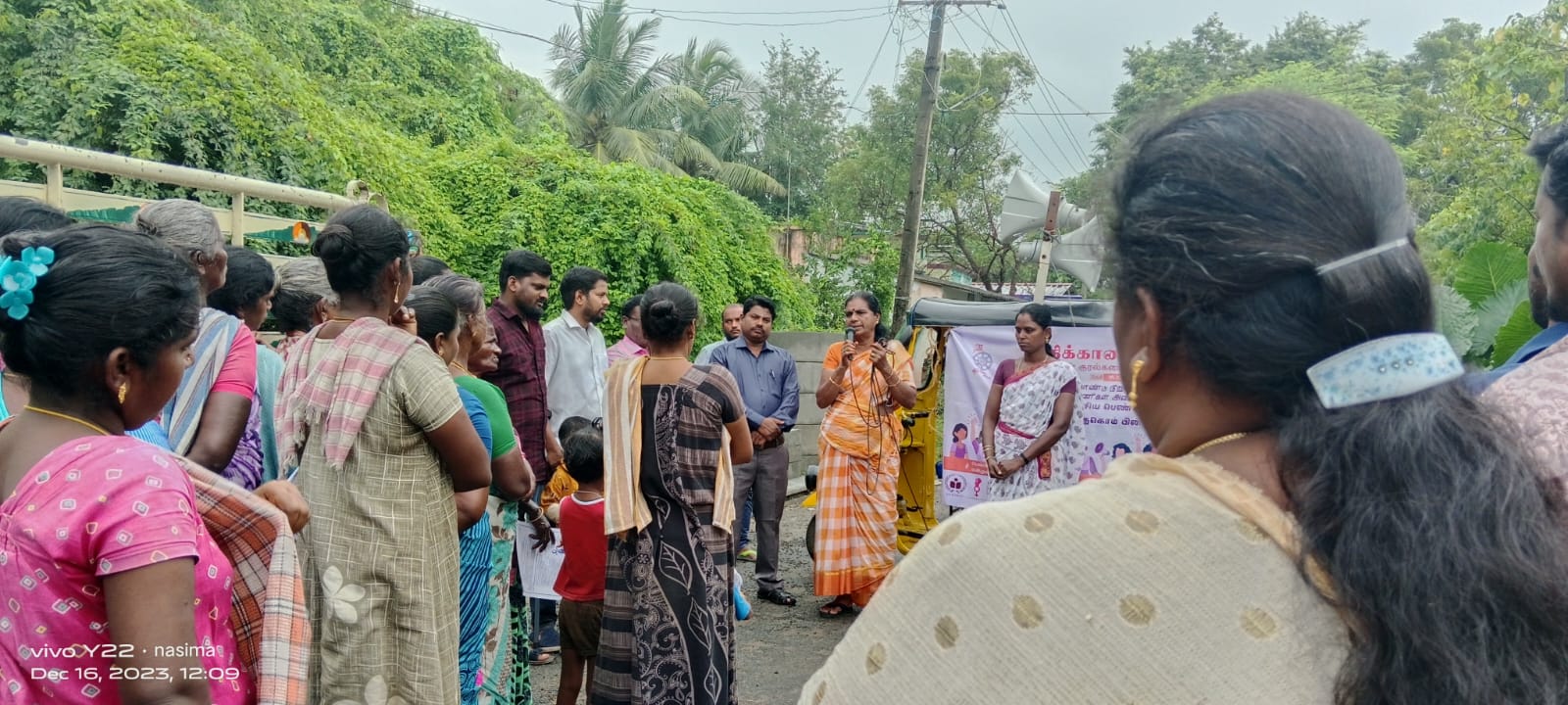 நோக்க உரை திருமிகு சுதா மாவட்ட ஒருங்கிணைப்பாளர் அவர்கள் பேசுகையில் அதே கொம் பின்னகம் 30 ஆண்டுகளாக செய்து வரும் பணிகளை விளக்கினார் வருடம் வருடம் நவம்பர் 25 முதல் டிசம்பர் 10 வரை 16 நாள் பெண்களுக்கு எதிரான வன்முறை குறித்த தொடர் பிரச்சாரம் செய்து வருவோம் அதனை தொடர்ந்து இந்த நிகழ்ச்சி நடைபெறுகின்றது என்றும் கடந்த நான்கு ஆண்டுகளாக காரைக்கால் மாவட்டத்தில் பாலியல் வன்முறையால் பாதிக்கப்பட்ட பெண்களுக்காக பணி செய்து வரும் விவரங்களை கூறினார் பின்பே பெண்களுக்கு வன்முறை தெரிந்த நபர்களாலும் வீட்டில் உள்ளவர்களாலும் நடக்கின்றது என்பதனை எடுத்துக் கூறினார் எனவே அப்படி பிரச்சினை நடந்தால் அவர்கள் முன்வந்து அவர்களின் பிரச்சனைகளை அணுகுவதற்கான புரிதலை ஏற்படுத்தினார் பெண்ணிற்கு ஒரு பிரச்சனை என்றால் நாம் அனைவரும் ஒன்றிணைந்து செயல்பட வேண்டும் என்பதற்கான புரிதலை ஏற்படுத்தினார் பெண்களுக்கு ஏற்படும் பொருளாதார வன்முறை உடல் ரீதியான வன்முறை மன ரீதியான வன்முறை பாலியல் வன்முறை குறித்து விளக்கினார் பெண்களுக்கு குடும்ப வன்முறை மற்றும் பெண்களுக்கு எதிரான எந்த விதமான வன்முறை ஏற்பட்டாலும் உடனடியாக எங்களைப் போன்ற தன்னார்வலர் அமைப்புகளை அணுகி தீர்வு காண வேண்டும் உடனடியாக காவல் நிலையம் செல்ல வேண்டும் என்ற அவசியம் இல்லை எனவே பெண்களுக்கு ஏதேனும் பிரச்சினை ஏற்பட்டால் 1.81 என்ற எண்ணை அணுகி தீர்வு காணலாம் குழந்தைகளுக்கு ஏதேனும் பிரச்சனை என்றால் 1098 என்ற எண்ணை அணுகி தீர்வு காணலாம் என்று விளக்கினார்.