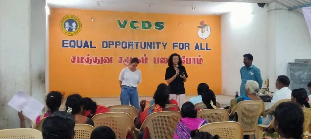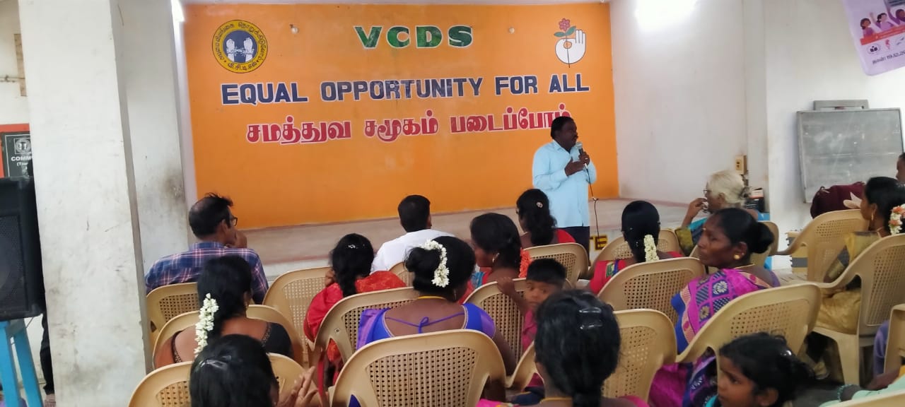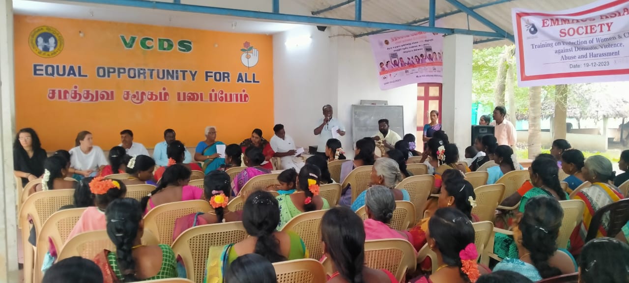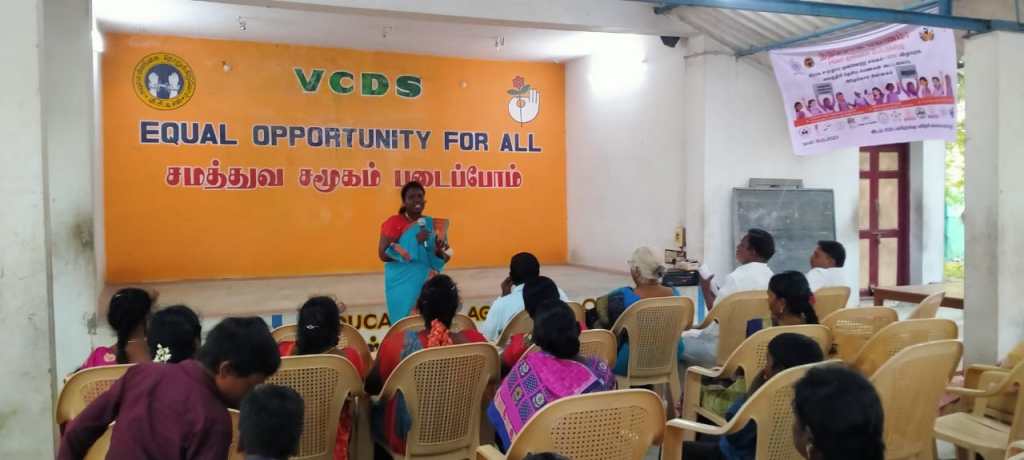 VCDS, ADECOM, Maithiri National Federation of Women, Emmaus and District Social Welfare Department organized a 16-day of campaign on Journey to Justice followed workshop on violence against women titled JOURNEY FOR JUSTICE RECOVERING OUR VOICES held on 19.12.2023 at VCDS Karasanur Centre, from 10 am to 4 pm. This seminar was organized by Navajothi Women’s Organiser Ms.Kowsalya Martin. The commentators were Tindivanam Constituency Former Member of Legislative Assembly and Senior Advocate Mr.R.Sethunathan, Secretary of Tamil Nadu and Pondicherry School Education Protection secretary Mr.J. Krishnamurthy, Vanur Block Child Development Project Officer Ms. Jegatheeswari, Tindivanam Mercy Forum Founder Bulavar.Man.Ku.Ezhumalai, Pondicherry Mother Foundation Addiction Rehabilitation Center Coordinator Mr.Kuppusamy, ADECOM Network Maithiri Project Villupuram District Coordinator Ms. Aarthi Epciba, ADECOM Network Advocate Mr. Prakash and French volunteers Sarah and Mathilde attended and gave their comments. A total of 210 women’s and children from 15 villages including 20 female students and 20 students are participated in the meeting. Also Emmaus Asia Secretary, Assistant Inspector of Police and Head Constable of Vanur Police Station participated in this one day workshop.