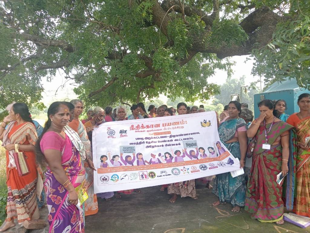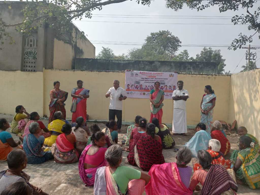 21.12.2023, திருவண்ணாமலை மாவட்டத்தில் கரையம்பாடி , கடலூர் கிராமத்தில் இன்று பெண்கள் மற்றும் பெண் குழந்தைகளுக்கு எதிரான வன்முறை குறித்த விழிப்புணர்வு தெருமுனை பிரச்சார நிகழ்ச்சி நடைபெற்றது. அதில் திருமிகு காயத்ரி பணித்தள பொறுப்பாளர் அவர்கள் அனைவரையும் வரவேற்று பேசினர். திருமிகு தமிழ்ச்செல்வி அவர்கள் நோக்க உரையாற்றுகையில் அதேகொம் பின்னம் மைத்திரி திட்டம் பணிகளைக் குறித்து விளக்கினர் குறித்து பேசப்பட்டது. பாலின சமத்துவம் குறித்து குழந்தைகளை சமமாக வளர்ப்பது பற்றியும் அவர்களை கண்காணிக்கும் முறை பற்றியும் வாட்ஸ் அப்பை பாதுகாப்பாக கையாளும் முறை பற்றியும் கூறப்பட்டது.