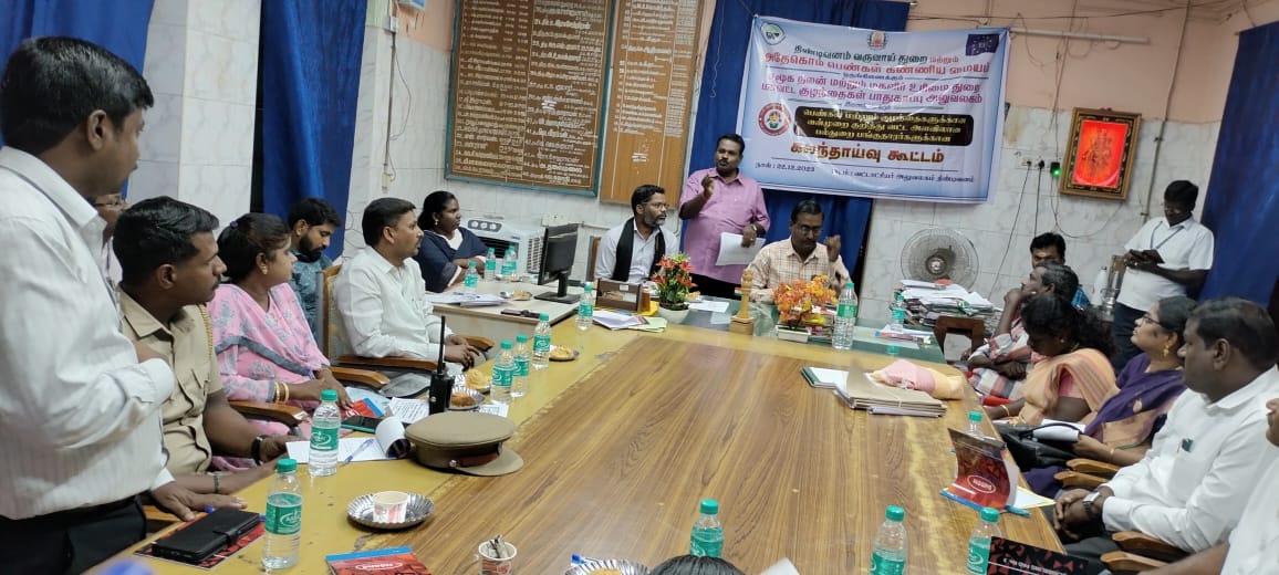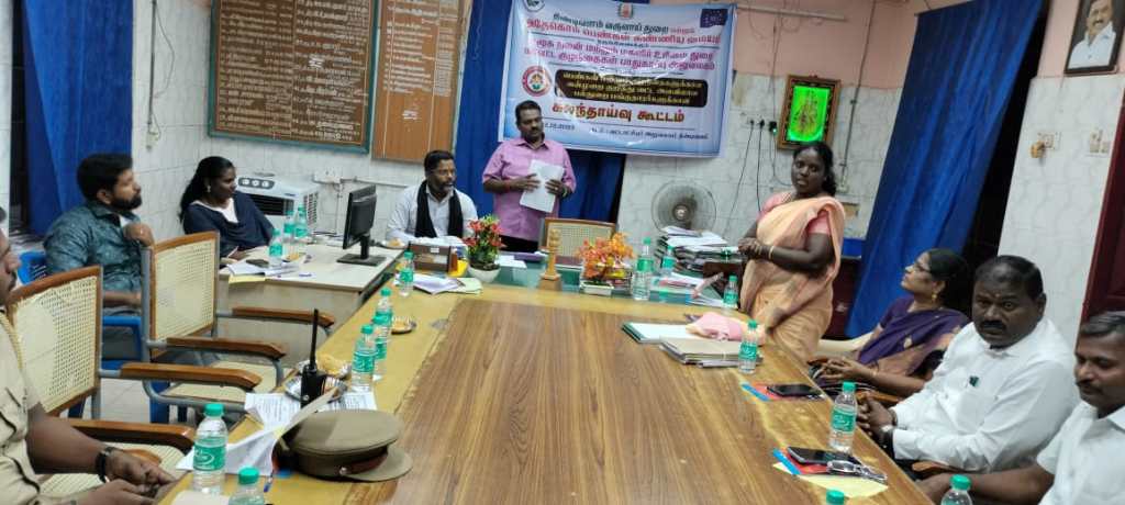 On 22.12.2023, Block – level multi-stakeholder consultation meeting on violence Against women and girl child jointly organized by Tindivanam Revenue Department and ADECOM Women’s Dignity Centre coordinated by Social Welfare and Women’s Rights Department , District Child Protection Office.