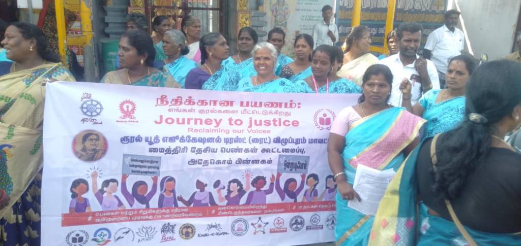 மைத்திரி தேசிய பெண்கள் கூட்டமைப்பு அதேகொம் பின்னகம் புதுச்சேரி மற்றும் ரூரல் யூத் எஜுகேஷனல் டிரஸ்ட் இணைந்து நடத்திய “நீதிக்கான பயணம் எங்கள் குரலை மீட்டெடுக்கிறது” என்ற தலைப்பில் பெண்கள் மற்றும் குழந்தைகளுக்கு எதிரான வன்முறை குறித்து ஒரு நாள் பிரச்சார நிகழ்ச்சி நடைபெற்றது. இந்நிகழ்வில் பெண்கள்- 150, ஆண்கள்- 30, வளரிளம் பெண்கள்- 30 என 120 பங்கேற்பாளர்கள் கலந்து கொண்டனர். குமுதா ரமேஷ் ஊராட்சி மன்ற தலைவர் ரெட்டணை அவர்களின் தலைமையில். திருமதி ரமணி அவர்கள் ரைட் பெண்கள் ஒருங்கிணைப்பாளர் வரவேற்புரை ஆற்றி நிகழ்ச்சியை துவக்கி வைத்தார். குறிப்பாக போக்சோ சட்டம் பற்றியும் குழந்தை திருமணம் பற்றியும் பெண்கள் பணி செய்யும் இடத்தில் புகார் பெட்டகம் வைக்க வேண்டும் என்று மக்களுக்கு விளக்கினார். அவரை தொடர்ந்து திருமிகு குமுதா ரமேஷ் அவர்கள் ஊராட்சி மன்ற தலைவர் அவர்கள் கருத்துரை வழங்கி மக்களுக்கு விழிப்புணர்வு கொடுத்தார். திருமிகு பார்கவி அவர்கள் மாவட்ட குழந்தைகள் பாதுகாப்பு அலுவலர் விழுப்புரம் அவர்கள் பெண் குழந்தை பாதுகாப்பும் கற்றியும் பெண் குழந்தைகள் வளர்ப்பது குறித்தும் அவ நிகழ்ச்சியில் உரையாற்றினார். பிறகு திருமிகு ரூபா தேவி ரைட் நிர்வாகி அவர்கள் இந்நிகழ்ச்சியின் கொடி அசைத்து பேரணியாக துவக்கி வைத்தார். பிரச்சாரத்தில் கலந்து கொண்ட அனைவரும் வன்முறை இல்லாத நாடாக மாற்றுவோம் என்று உறுதிமொழி ஏற்றனர். பிறகு B1 காவல் நிலையம் பெண் காவலர் பிரச்சாரத்தில் கலந்து கொண்டார். இக்கூட்டத்தில் பிரச்சாரத்திற்கு வந்திருந்த அனைத்து பெண்களும் பெண்களுக்கு எதிரான வன்முறை பாலியல் துன்புறுத்தல் நடந்தால் அனைத்து பெண்களும் ஒன்று இருந்து குற்றங்களை குறைக்க முன்வந்து போராடுவதற்கான புரிதலை நாங்கள் பிரச்சாரத்தில் பெற்றுள்ள என்று தகவலை எங்களிடம் கூறினார்கள்.