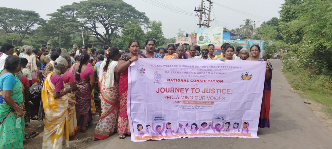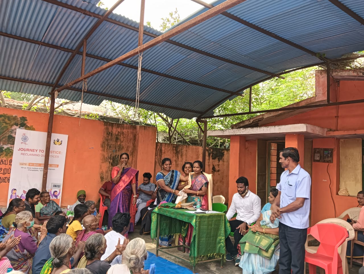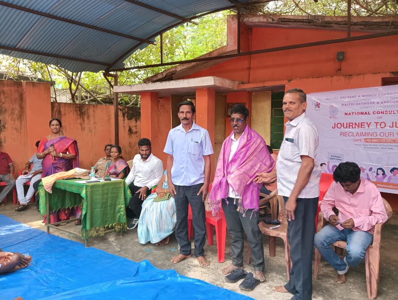 23.12.2023 அன்று புலிப்பாக்கம் ஊராட்சி, செங்கல்பட்டு மாவட்டம். மைத்திரி தேசிய பெண்கள் கூட்டமைப்பு அதேகொம் பின்னகம் – புதுச்சேரி மற்றும் இனாட்டா பவுண்டேஷன் இணைந்து நிகழ்த்திய “நீதிக்கான பயணம் எங்கள் குரலை மீட்டெடுக்கிறது” பெண்கள் மற்றும் குழந்தைகளுக்கு எதிரான வன்முறை குறித்து ஒரு நாள் நிகழ்ச்சி நடைபெற்றது. திருமதி நிர்மலா அசோகன் ஊராட்சி மன்ற தலைவர் புலிப்பாக்கம் அவர்கள் இந்நிகழ்ச்சிக்கு தலைமை வகித்து பேசினார். திருமதி செண்பகவள்ளி மாவட்ட ஒருங்கிணைப்பாளர் அவர்கள் நிகழ்ச்சிக்கு வருகை தந்த அனைவரையும் வரவேற்று வரவேற்புரை வழங்கினார். திருமதி மலர்விழி மாவட்ட குழந்தைகள் பாதுகாப்பு காவல் அலுவலர் அவர்கள் கருத்துரை வழங்கினார். திரு.N. ராமச்சந்திரன் முன்னாள் தலைவர் குழந்தைகள் நலக்குழு(CWC) செங்கல்பட்டு அவர்கள் பேசுகையில் குழந்தை திருமணம் குறித்து ஆதாரத்துடன் மக்கள் மத்தியில் விழிப்புணர்வு ஏற்படுத்தியுள்ளார். திருமதி.N. பரஞ்ஜோதி இனாட்டா பவுண்டேஷன் அவர்கள் பேசுகையில் குடும்ப வன்முறை பாலியல் வன்முறை(சீன்டல்) மற்றும்16நாள் பிரச்சாரம் குறித்தும்,பெண்களுக்கான சம உரிமை குறித்து மிகவும் தெளிவாக விளக்கினார். திருமதி.S. ஜெயந்தி இனாட்டா பவுண்டேஷன் அவர்கள் பேசுகையில் பெண் மாற்றுத்திறனாளிகள் சந்திக்கும் வன்கொடுமைகளை எப்படி குறைப்பது என்பதை பற்றி விளக்கினார். திரு.K. குமரேசன் வழக்கறிஞர் ஊராட்சி மன்ற துணைத் தலைவர் புலிப்பாக்கம் அவர்கள் நிகழ்ச்சிக்கு வருகை புரிந்த அனைவருக்கும் இறுதியாக நன்றியுரையாற்றினார்.