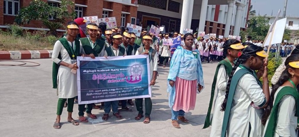 On 04.03.2024, ADECOM Network WRC Staffs coordinator Ms .AarthiEpciba,Mr.Murugan and psychological counselor Mr.Ettiyappan are invited to participate the Beti Bachao, Beti Padhao (BBBP) awareness rally Program by CWC police department in this program special invitee CWC ADSP Mr.Sridhar is participate and gave special speech about Girl child education and safety of Girl child and Women’s at Law College Villupuram in this program 3 College students are participated totally 750 girls