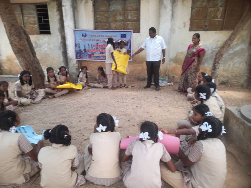 The second is about celebrating the birth of a child in two groups. Also about naming and celebrating the baby. Also about child health services. Questions were asked and discussed in groups separately and finally boys and girls were said to be equal with examples. Educating children Sharing of work in NEET is considered to be very important. The children were told that if there are destitute children in their area who have lost a single parent, they should file a petition at the Villupuram District Child Protection Office.