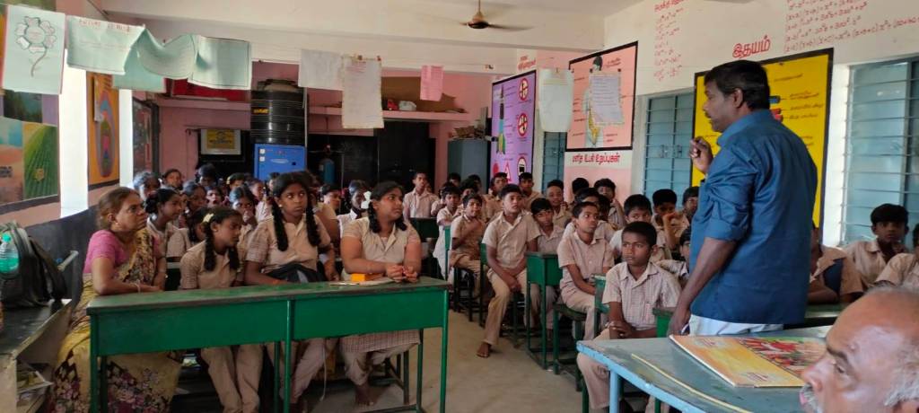 On 23.4.24, Gingee dignity center organized awareness program for students in Government Middle School Jayangondam, Gingee Taluk. The event was presided over by the school headmaster Thiruvaral Ilangovan School Headmaster. In the program school teacher five and students 182 ( Male. 89,Female.93) were participated.