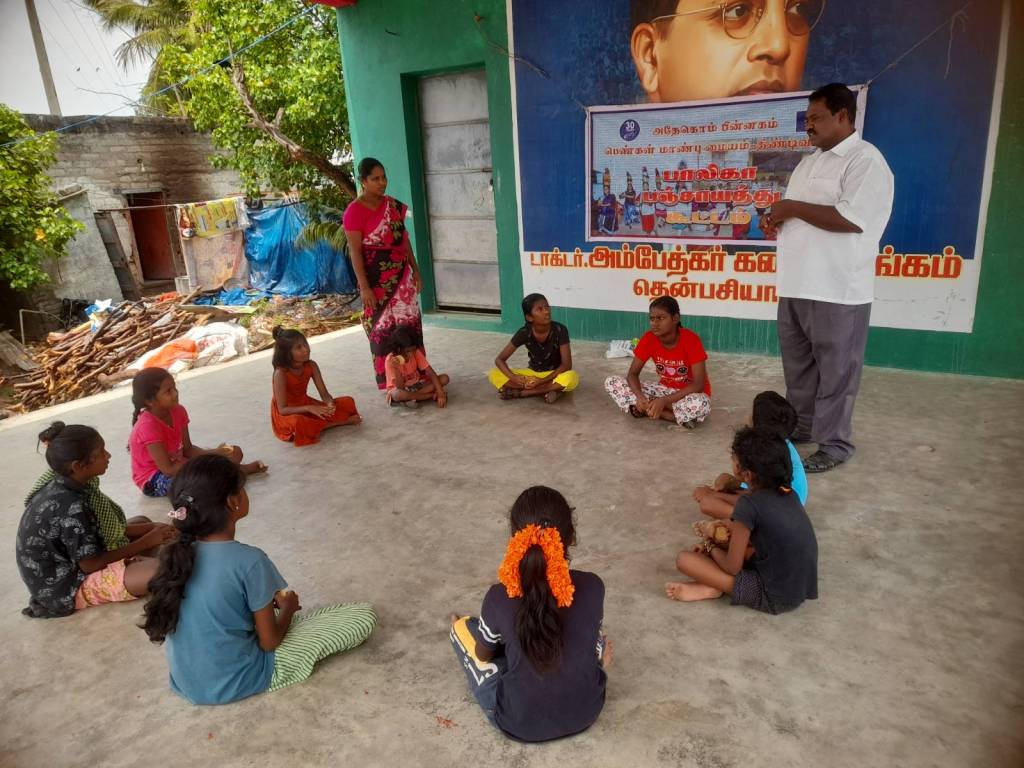 The children were told that if there are destitute children in their area who have lost a single parent, they should file a petition at the Villupuram District Child Protection Office. Through group play, the children were asked about the safety of the children to remember that they should first scream to be safe, then run away from the place, and finally tell others what happened there. Scream, Run , say