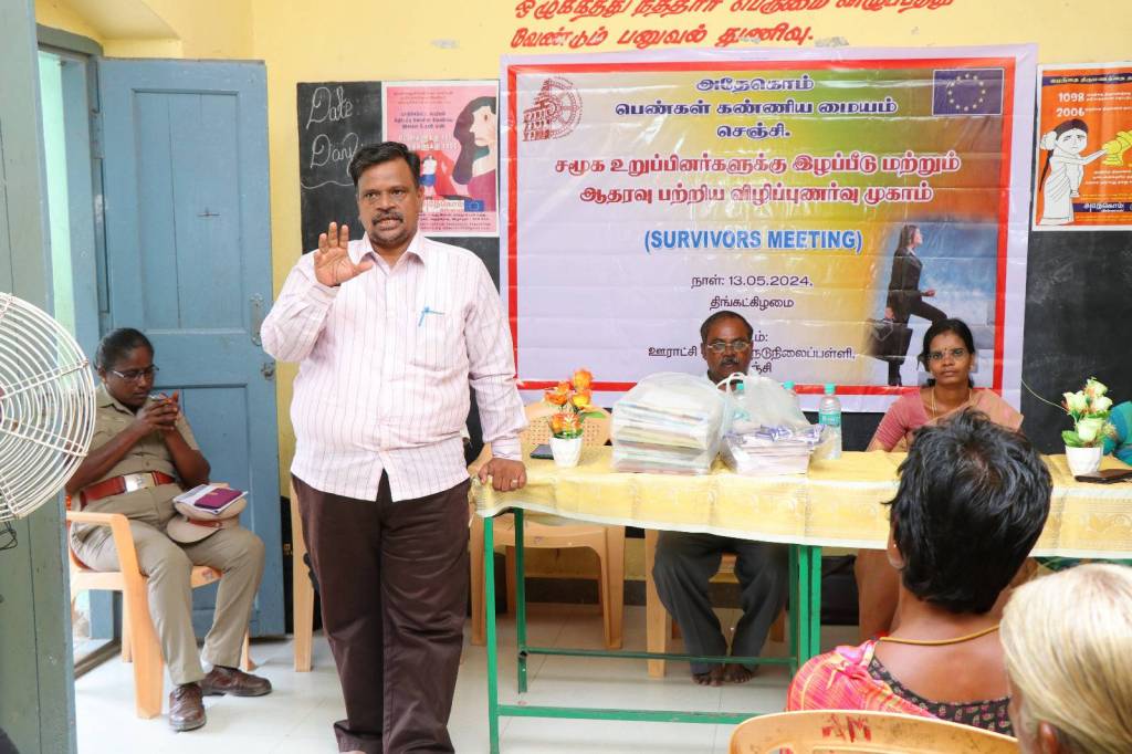 On 13.5.24 An awareness camp on compensation and support for community members was held on behalf of ADECOM Women’s Dignity Center at Gingee Panchayat Union Middle School, Villupuram Distric. In this camp Mr. JANBOSCO Coordinator ADECOM Women’s Dignity Center welcomed them all. Mrs. Aarti IPSBA Coordinator Women’s Resource Center Villupuram delivered an introductory speech on the occasion.