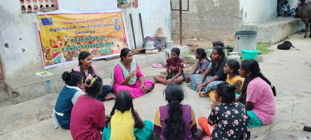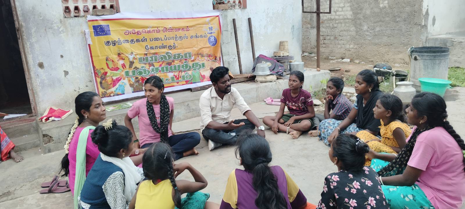 We made it clear that the first goal is to go to a quality education school and no one should drop out. They said that a student named Sumitra did not go to school in the eighth standard. They called the student named Sumitra and asked what is the problem and why did she not go to school. They told her that the teacher is beating her in the school. They said yes.The second goal is Gender Equality. We made it clear that it is not enough to achieve gender equality outside, your brothers and sisters in your home should also give you gender equality.