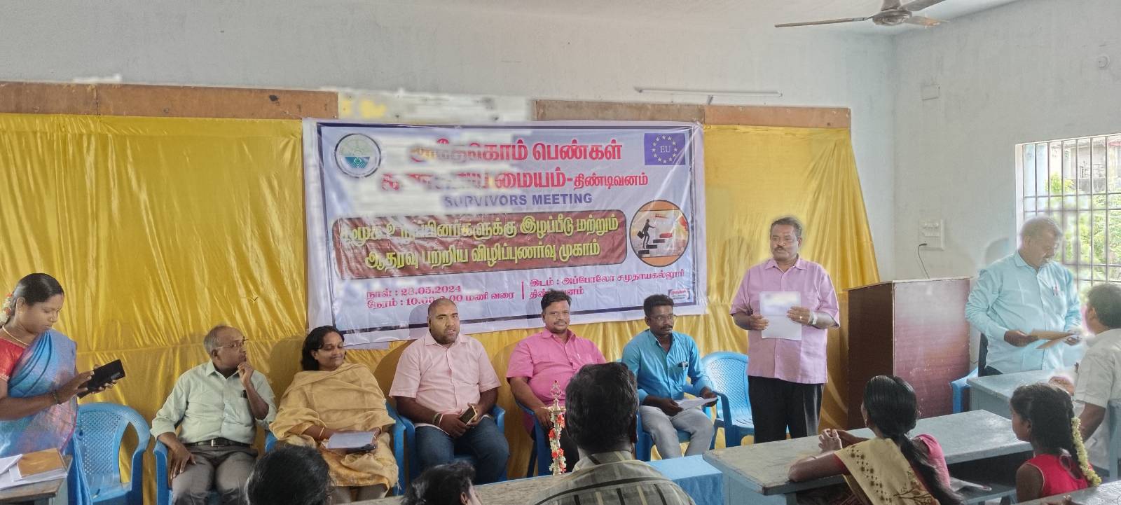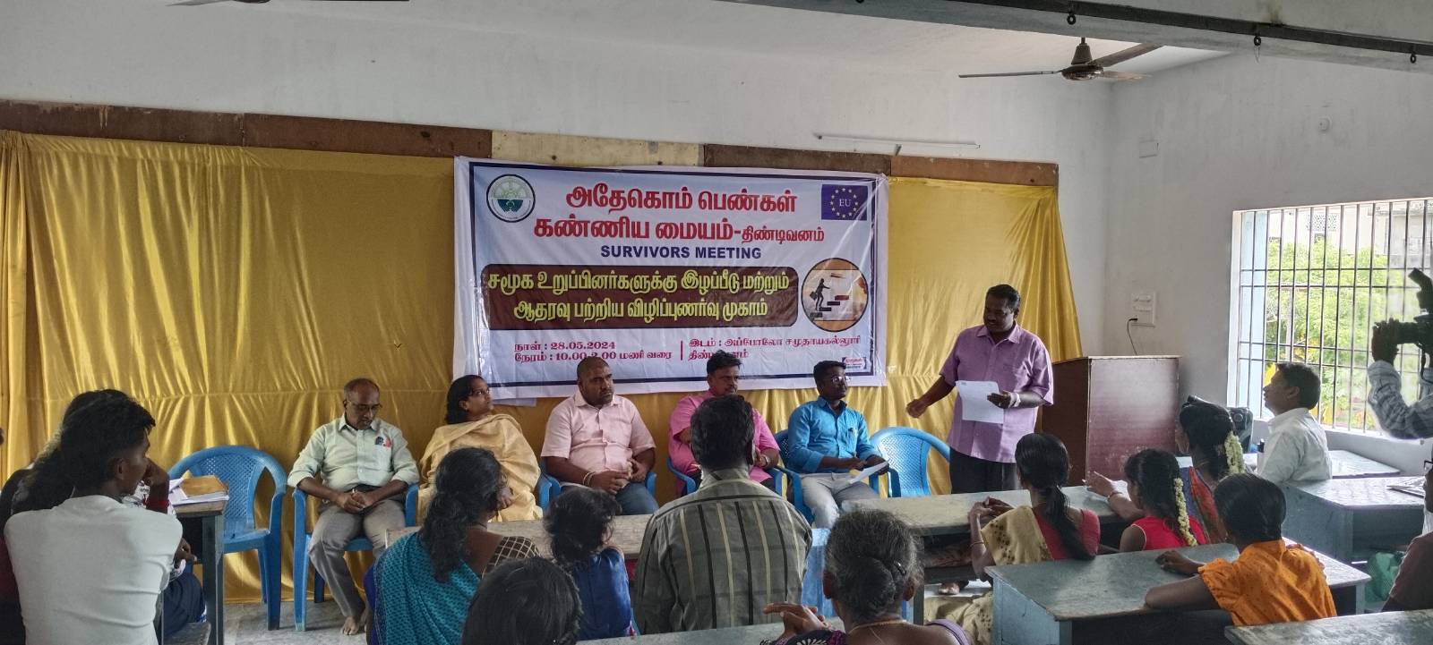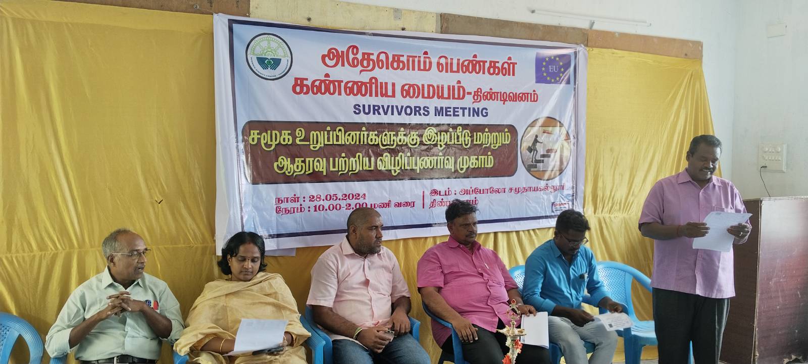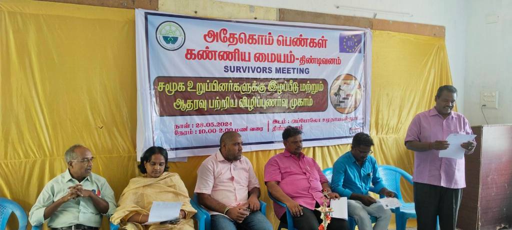 திண்டிவனம்- மே 28 இன்று திண்டிவனம் அதேகொம் பெண்கள் கண்ணிய மையம் சார்பில் திண்டிவனம் அப்போலோ சமுதாயக் கல்லூரியில் சமூக உறுப்பினர்களுக்கு இழப்பீடு மற்றும் ஆதரவு பற்றிய விழிப்புணர்வு முகாம் நடைபெற்றது. இதில் அதேகொம் பெண்கள் கண்ணிய மையம் நிர்வாக அறங்காவலர் மற்றும் சட்ட ஆலோசகர் திரு. சீனுபெருமாள் அவர்கள் தலைமையில் ஆரம்பிக்கப்பட்டது. இதில் சிறப்பு விருந்தினர்களாக குழந்தைகள் பாதுகாப்பு அலுவலக சட்டம் சார்ந்த நன்னடத்தை அலுவலர் திரு. நெப்போலியன் அவர்களும், தென்னகம் டிரஸ் நிர்வாக இயக்குனர் திரு. பாலமுருகன் அவர்களும்,சித்த மருத்துவர் திருமதி பால ரக்ஷிதா அவர்களும். அப்போலோ சமுதாயக் கல்லூரி தாளாளர் திரு. முரளிகண்ணன் பெருமாள் ராஜா அவர்களும், கலந்து கொண்டனர். அதேகொம் பெண்கள் கண்ணிய மையம் ஒருங்கிணைப்பாளர் திரு. லட்சுமிபதி அனைவரையும் வரவேற்றார் இதில் குழந்தைகளின் கல்வி மேம்பாடுகள் பற்றியும் சட்டம் சார்ந்த செயல்பாடுகள் பற்றியும் பெண் குழந்தைகள் பாதுகாப்பு பற்றியும் அதேகொம் பெண்ணகம் தண்ணிய மையம் நிர்வாக அறங்காவலர் திரு, சீனுபெருமாள் எடுத்துக் கூறினார். மனநிலைகளில் மாற்றம், சத்தான உணவுகள், பற்றியும் உடல் நிலைகள் பற்றியும் சித்த மருத்துவமர் எடுத்துக் கூறினார். அரசு மூலமாக கிடைக்கும் இழப்பீட்டுத் தொகைக்கான விண்ணப்பங்கள் விண்ணப்பிப்பது எப்படி என்று எடுத்துக் கூறினார். குழந்தைகள் பாதுகாப்பு அலுவலகம் மூலம் கிடைக்கும் உதவிகள் மற்றும் செயல்பாடுகள் பற்றியும் மாவட்ட குழந்தைகள் பாதுகாப்பு சட்டம் சார்ந்த அலுவலர் திரு. நெப்போலியன் எடுத்துக் கூறினார். வழக்கின் தன்மைகள் பற்றியும் வழக்கின் தற்போதைய நிலையில் குறித்தும் வழக்கறிஞர் திரு. பிரகாஷ் அவர்கள் எடுத்துக் கூறினார். பெண் குழந்தைகளை படிக்க வைப்பதற்கும் பெண் குழந்தைகளை தங்கள் அப்போலோ சமுதாயக் கல்லூரியில் வறுமையில் இருக்கும் பெண் குழந்தைகளுக்கு இலவசமாக பயிற்சியில் சேர்த்து படிக்க உதவி செய்வதாக அப்போலோ சமுதாயக் கல்லூரி தாளாளர் திரு முரளி கண்ணன் எடுத்துக் கூறினார். பெண் குழந்தைகளை படிக்க வைக்க அனைவரும் ஒற்றுமையாக சேர்ந்து பாடுபட வேண்டும் எனவும், அதேகொம் நிறுவனர் நம் விழுப்புரம் மாவட்டத்தில் பாதிக்கப்பட்ட பெண்கள் மற்றும் பெண் குழந்தைகளின் நலன் கருதி உதவி செய்வதற்கு எங்கள் நிறுவனம் சார்பாக நன்றியை தெரிவித்துக் கொள்கிறோம் .