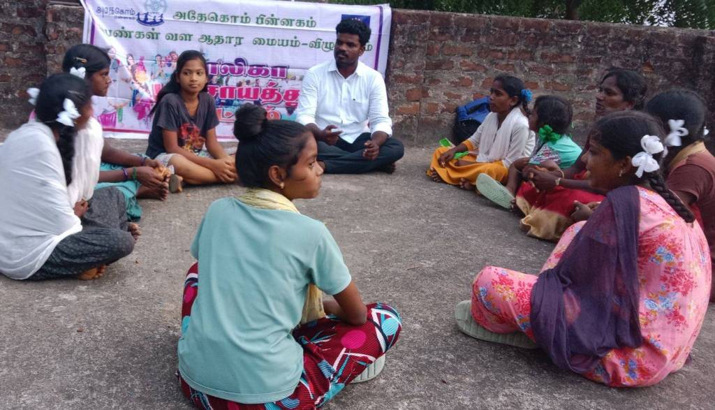 The meeting was organized by our committed volunteer, Mr. Arulmati, and was attended by Mr. Se. Murugan, the field coordinator of the Women’s Resource Center. Last month, we focused on environmental protection and sapling plantation. This month, the discussion centered around Adolescent Women’s Rights.