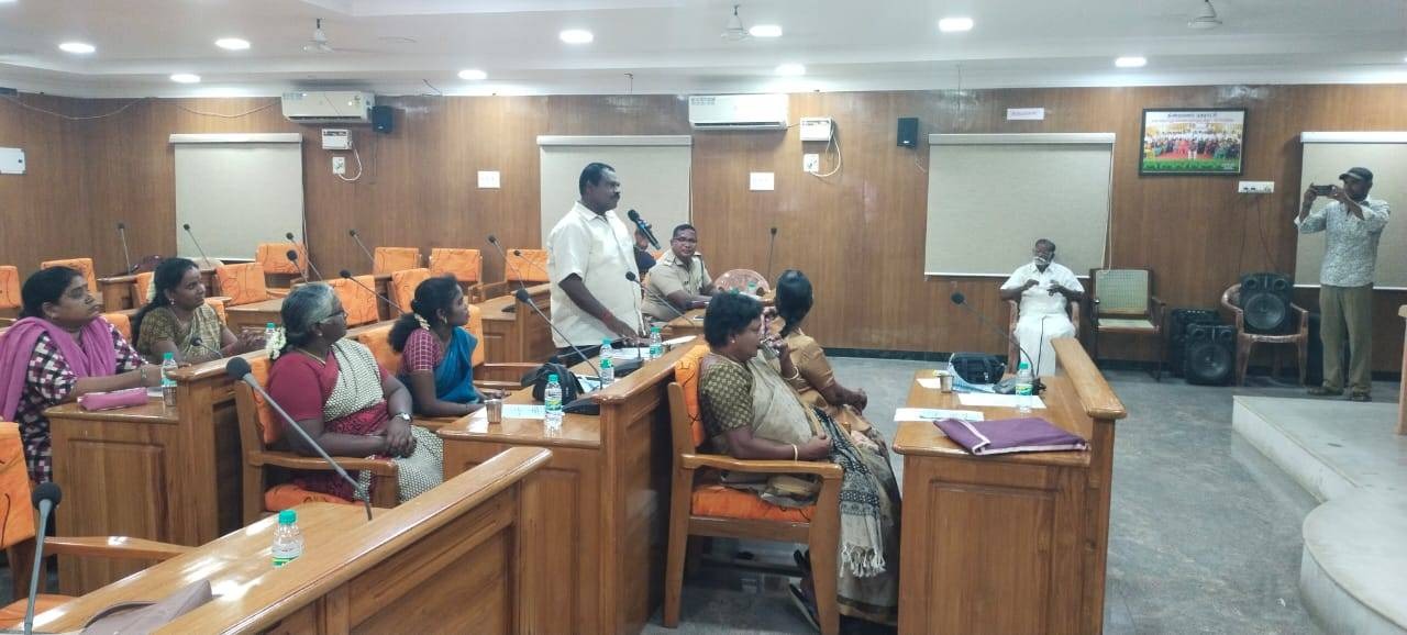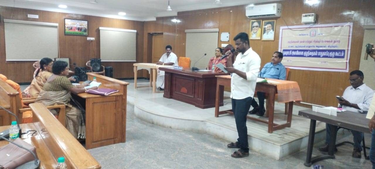 On April 29, a meeting of the Villupuram Urban Block Child Protection Committee was held at the Tindivanam Municipality Office. The session was presided over by Municipal Chairperson Mrs. Nirmala Ravichandran and Municipal Commissioner Mr. Kannan.