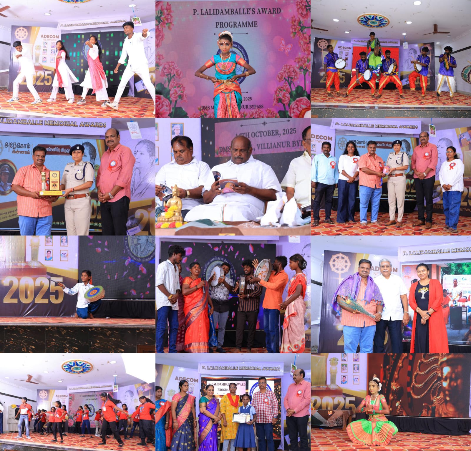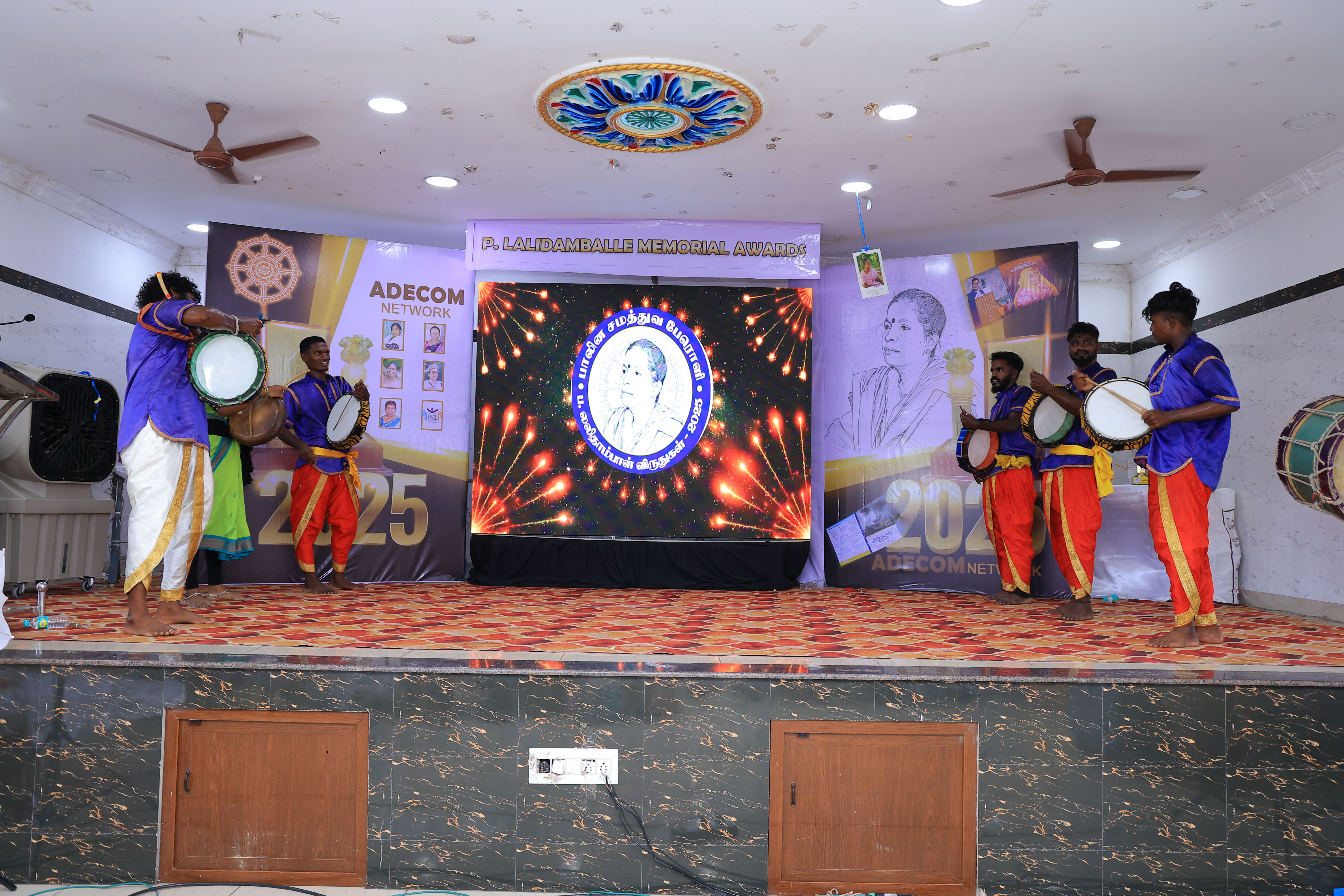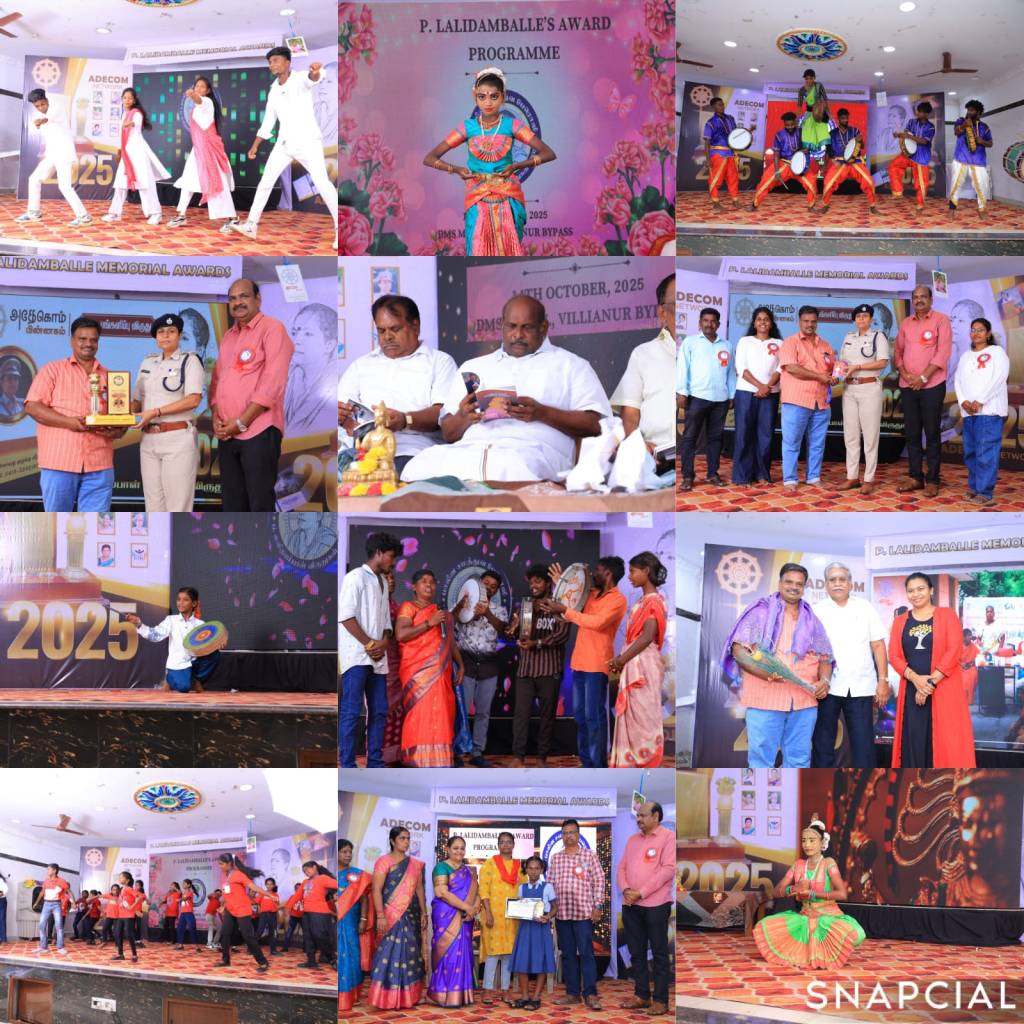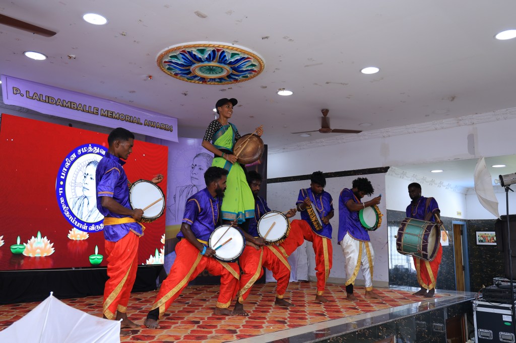 The 2nd anniversary of the birth of the great gender equality activist, Ms. P. Lalithamballe, was organized on October 14th at the DMS Mahal, Villiyanur, along with the Pinnagam Awards Ceremony. The former Minister of Social Welfare, Hon. Mr. M. Kandasamy, who presided over the main event, the book release, said that Ms. P. Lalithamballe was born to serve the people. Even though she died, her services and principles will never be forgotten. Any social work done with a selfless purpose. Social workers will never leave this earth. Their work will continue to be done well, he said in his special address. Following this event, the Adi Dravidian tribal people and the Adivasi people who had come from the Senchi area danced according to their cultural traditions and sang songs about Ms P Lalithamballe. The rural people also enjoyed singing and dancing gummi songs. Students danced and beat drums, and art groups performed their dances. Also, students of Raak College and students of Jawahar Dhrona Academy performed their dances, speeches, and songs to cheer them up.