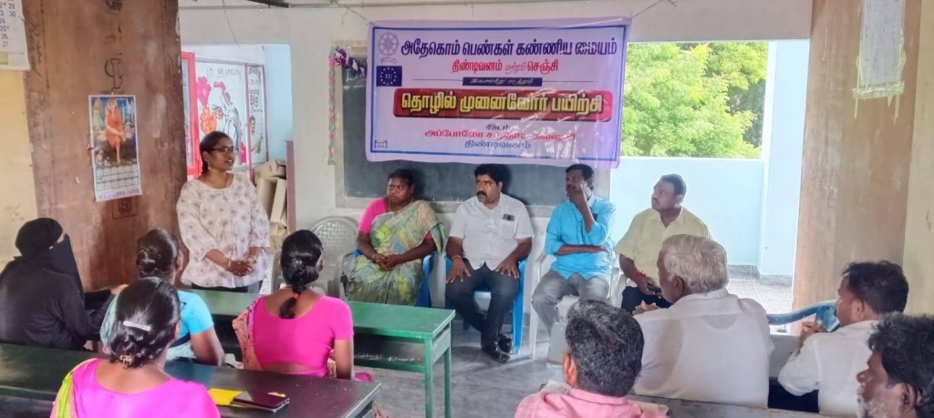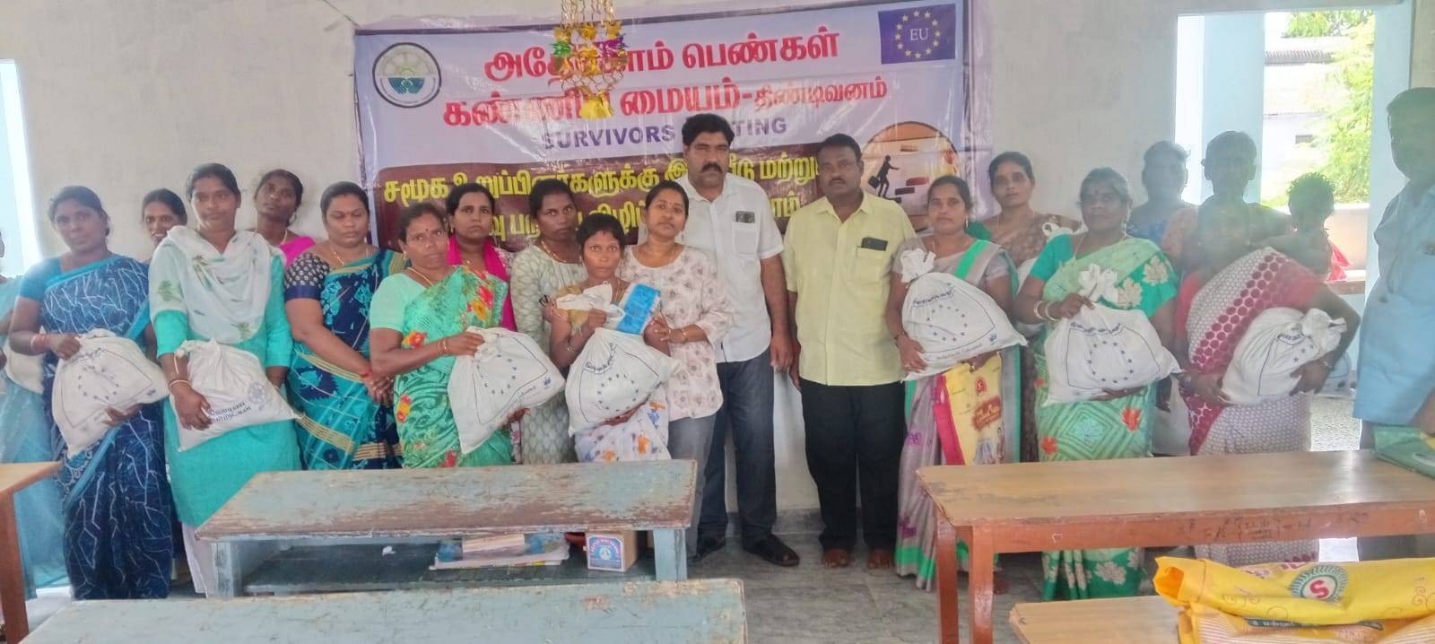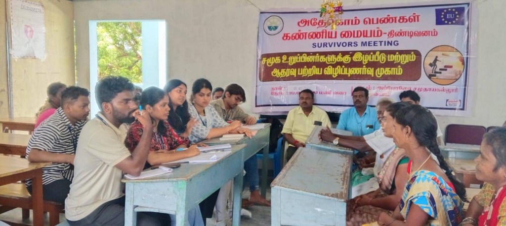 On 18.09.2025, ADECOM Womenβs Dignity Centre, Tindivanam, brought together survivors of violence, their families, college students, and community leaders at Sri Apollo Community College for a powerful Support Group Meeting. With the guidance of All Women Police Station Inspector Mrs. Krupalakshmi, ADECOM Trustee Mrs. Nandhini, and local coordinators, the session created awareness on legal rights, court procedures, and the vital support systems available for survivors. The discussions empowered participants to stand strong, seek justice, and support one another, while also encouraging youth to learn from real-life experiences of survivors. Relief materials were distributed to 25 survivor families, symbolizing care and solidarity. The program ended with gratitude and renewed commitment to building a society free from violence, where dignity and justice are ensured for all.