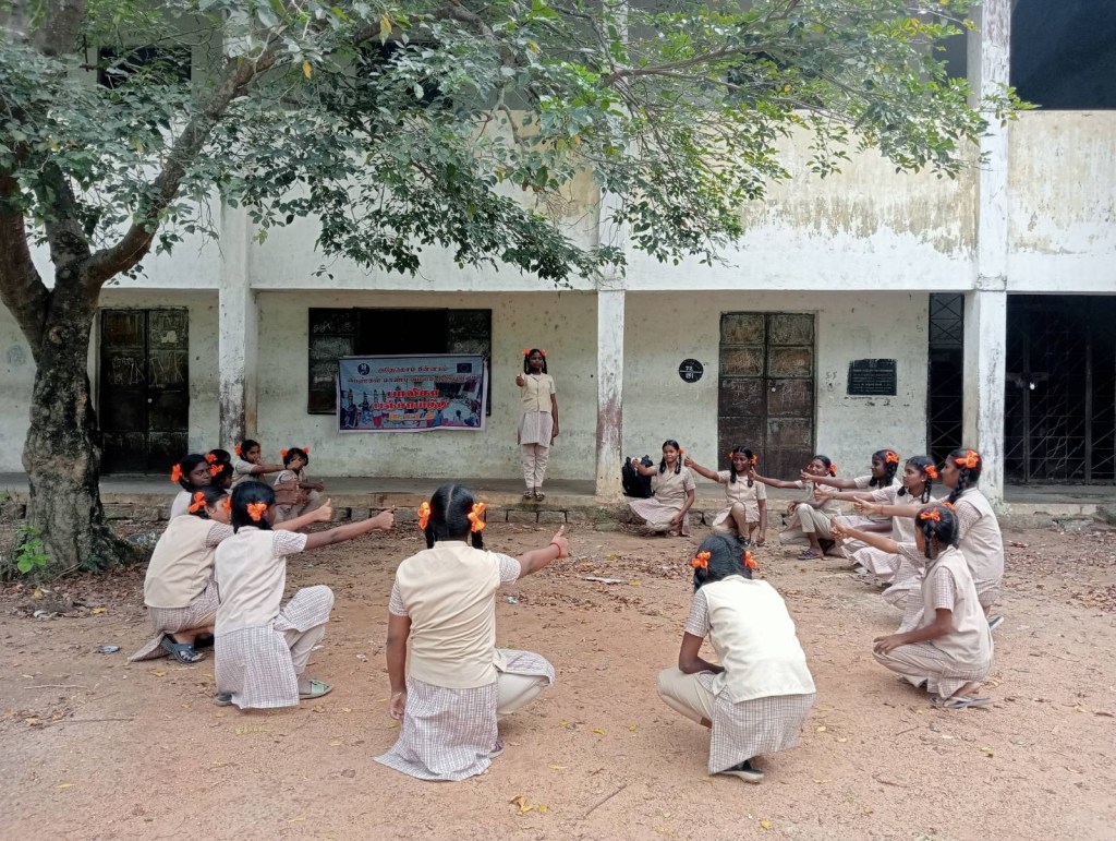 The session was facilitated by PLV Mrs. Chitra and Home-Based Education Volunteer Mrs. Ganga, focusing on identifying safe and unsafe spaces within the community. The girls actively shared their views, discussing which places in their village they felt unsafe and why. To strengthen memory and teamwork, fun group activities were also introduced.